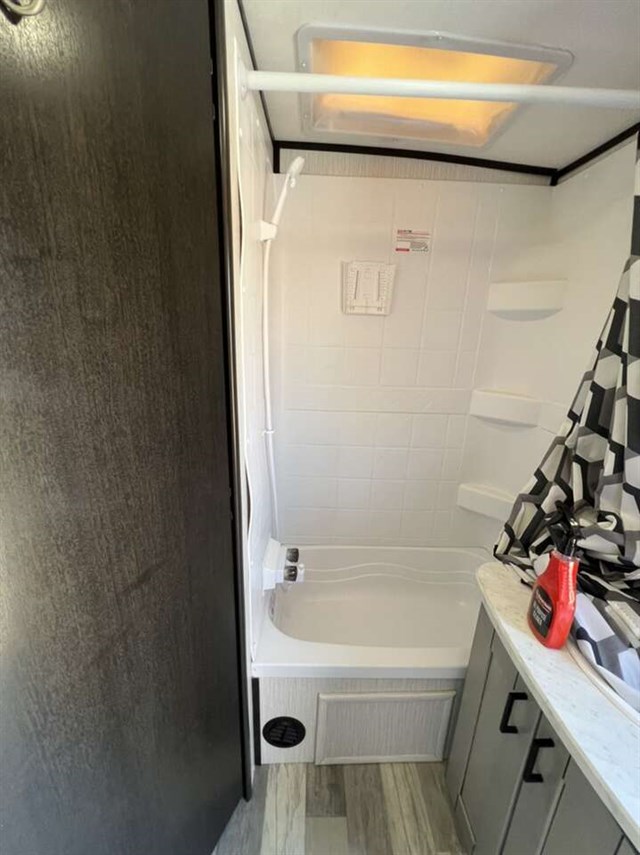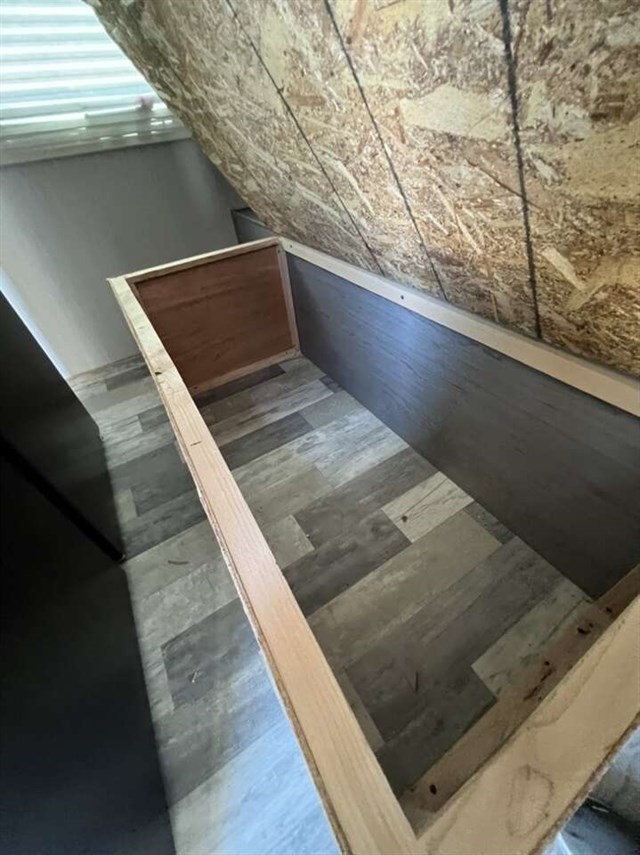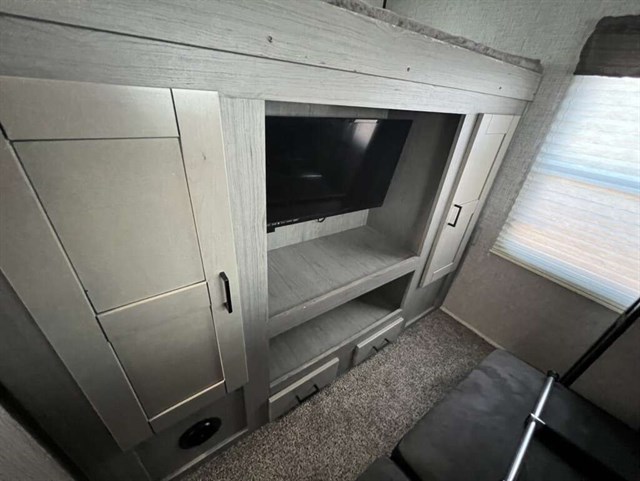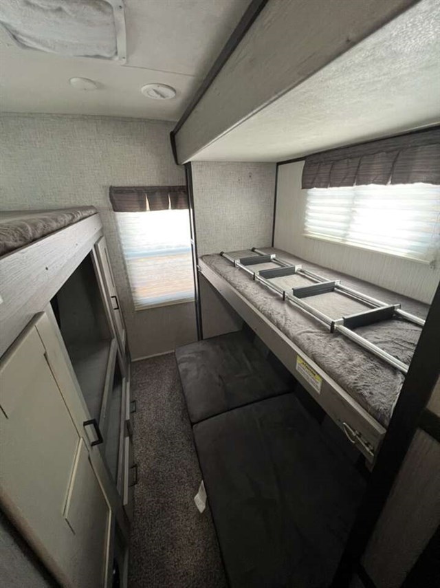 Back slider area: TV, 2 Single bunk beds, plus the bottom turns into a bed that can sleep two.