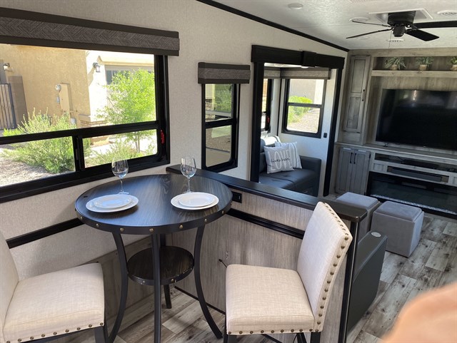 We are Selling our Gorgeous Fifth wheel. Owned by an accredited Certified Mobile RV Technician- So all components have been maintained perfectly- EMS Surge Protector hardwire installed in basement, High Quality ultra water filtration system installed at kitchen sink (0.01 micron filtration) A whopping 720 Watt 450 Amp hour Solar System So you can camp off grid no problem! Huge stainless steel oven, convection microwave, residential fridge with automatic ice maker, large one piece shower with seat. Washer and dryer hookups all ready to go. We have Loved this Rig, you will too. Arizona buyers pay no STATE tax when purchasing private party!!