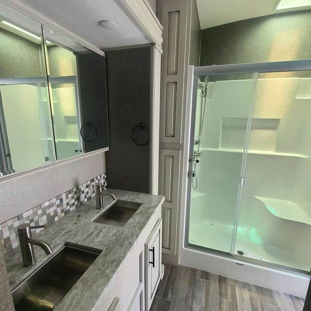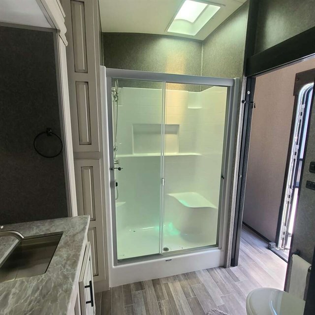 When you imagine luxurious details and stunning features that provide a one-of-a-kind traveling experience, you are imagining the Jayco North Point fifth wheel! Whether you're in the living area taking advantage of the cozy fireplace and big-screen LED HDTV, or you're in the kitchen grabbing a glass from the soft-close drawers and getting a drink of water using the whole-coach water purification system, you will thoroughly enjoy that no detail has been spared with the North Point. Not only have the interior furnishings been expertly constructed, but so has the base upon which the North Point was built. Known as a Jayco-exclusive, the 5-Star Handling package is what creates an ultra-smooth ride each time you're on the road, and it includes features like the Dexter axles with Nev-R-Adjust brakes, the MORryde rubberized suspension system, and the American-made Goodyear BEAST tires.