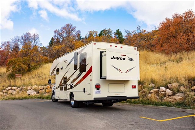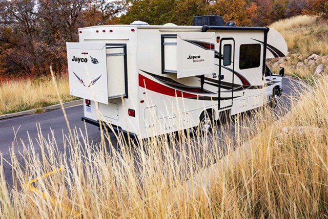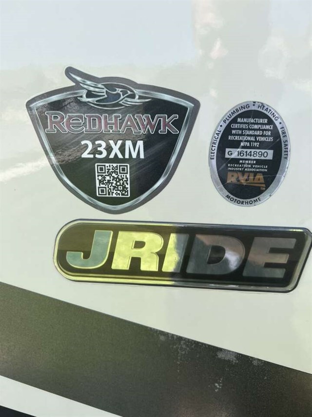 2017 Jayco Redhawk 23XM with 2 slides and 14,903 miles. This RV is approximately 26 feet 8 inches in length and features 3 camera monitoring system, 4KW Onan generator, Ducted A/C, 7.5K lb. hitch, tilt steering wheel, power windows, power door locks, electric/gas water heater, power patio awning, pass-thru storage, LED running lights, black tank rinsing system, exterior shower, inverter, booth converts to sleeper, power roof vents, black out shades, 3 burner range, residential refrigerator, convection microwave, cab over bunk, Flat Panel TV, and much more!