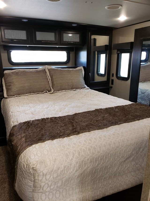 Off the rear beneath the master bedroom you will find a deep garage that is perfect for your street bike or other adventure gear. Loading and unloading will be easy using the rear ramp door.