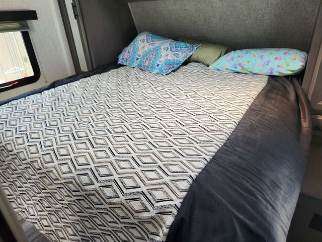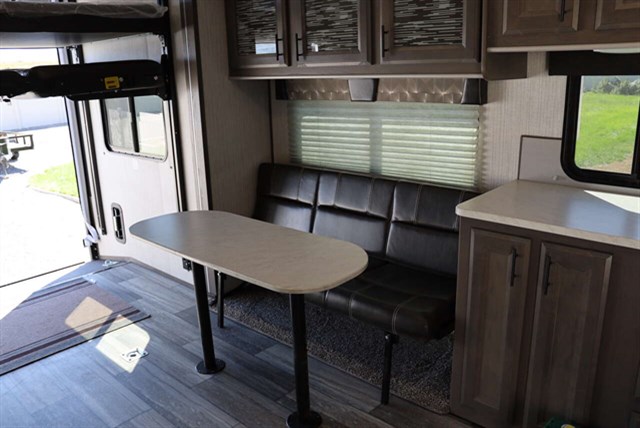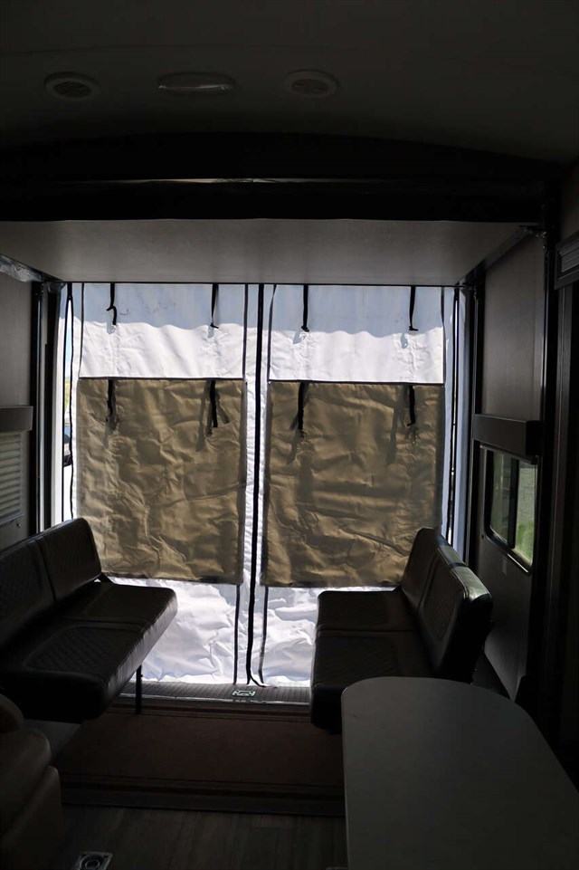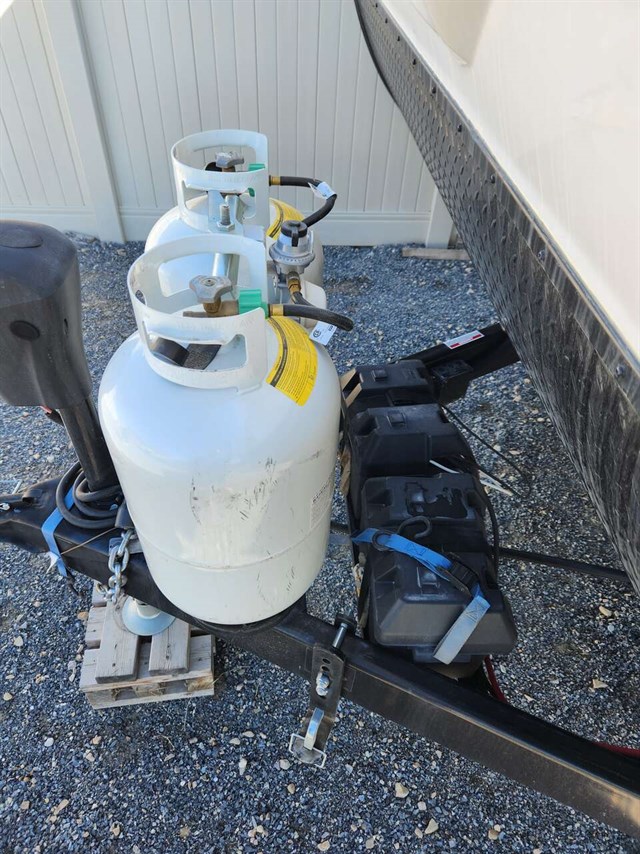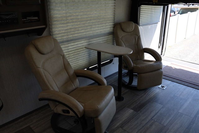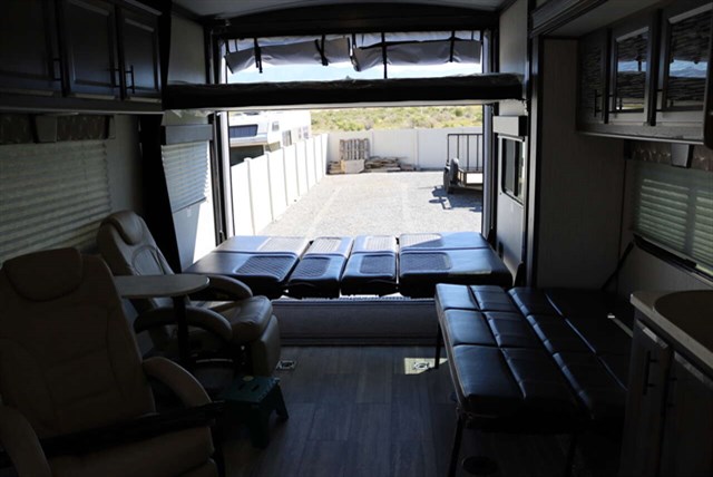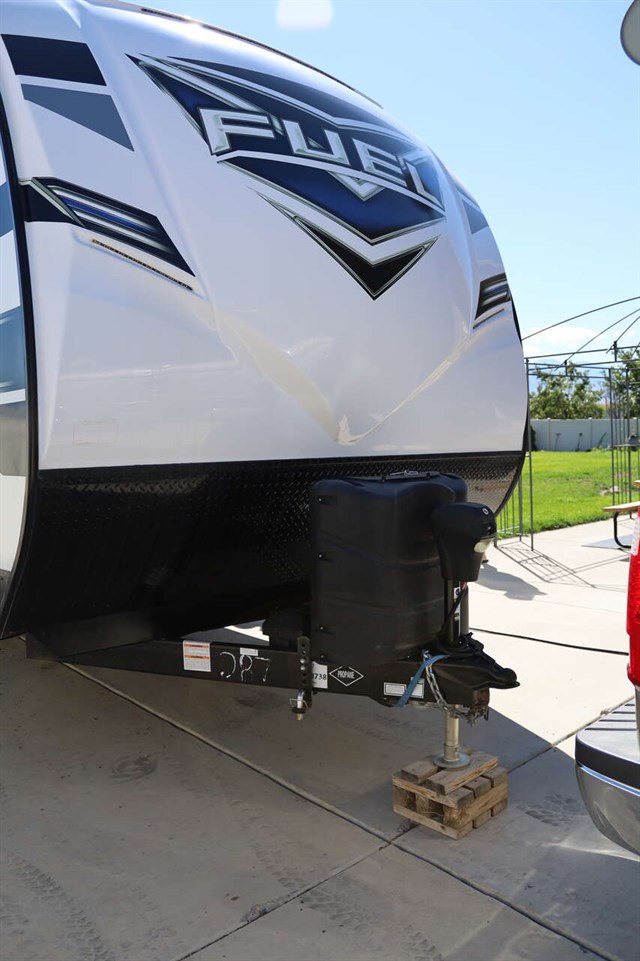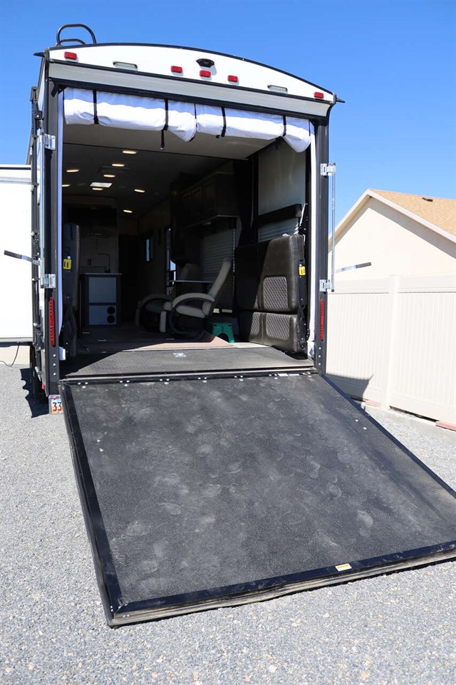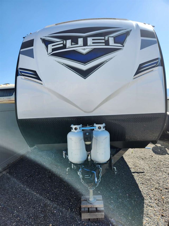 This 2021 Fuel Toy Hauler Series 287 has a Electric Tongue Jack, as well as a stabilizer jack, has had ceramic coating applied when first bought, 4000 w cummins generator low hours. 30 gallon on board fuel tank and dispenser, 2 coach batteries and 2 propane bottles 30lbs, one large slide out and 19 inch power awning with led lights, tv, DVD player plus Bluetooth radio with outdoor speakers, outside tank flush, with hoses and outside storage compartments, 3 burner stove plus a oven, microwave, gas and electric water heater, large shower. Has a king bed with an upgraded mattress in front and 2 queen electric beds in back and sleep 8 comfortably. has 3 tables for eating, 2 recliners- lots of storage in the kitchen area. The garage is large enough for a crew side by side and has plenty of D-Rings tie downs. Rear door is 94 w x 91 H