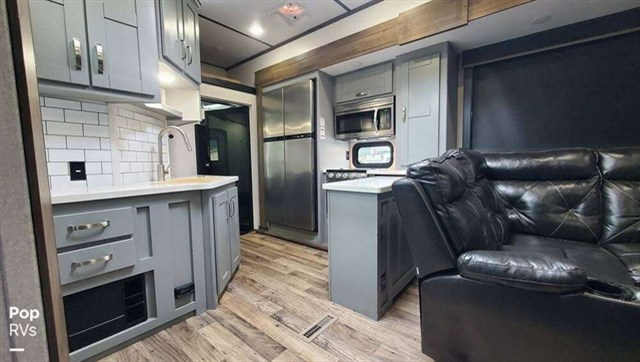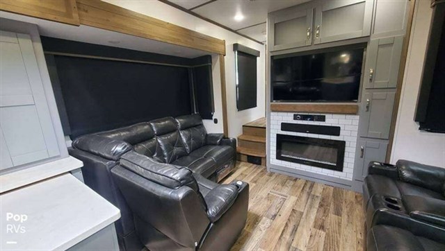This immaculate full-sized trailer is 44 feet long from nose to rear. It has a triple axil for added stability with a Lippert self-leveling system that makes set-up a breeze. Enjoy all the comforts of home while in the outdoors. The generator currently has less than 20 hours and has been used very little. The garage is twelve feet long. There are two bathrooms. A master bedroom as well as double queen beds in the rear. There is a nice seating area with a sectional that includes vibrating and heated chairs. It has a full sized fridge and has 3 slides to maximize square footage. I am selling the Anderson hitch with the trailer so don’t be worried you don’t have one. They are simple to install and even easier to hitch and hall with. I am selling it for what I owe. I purchased it for a little over $120,000 at the end of 2020.