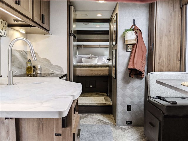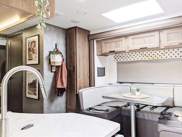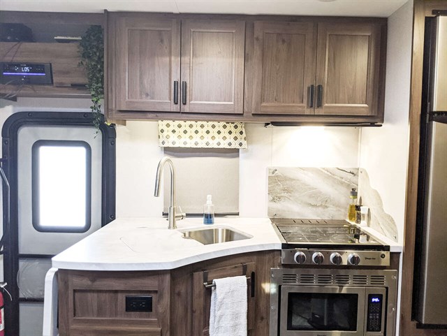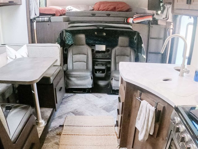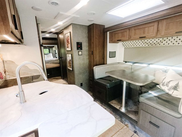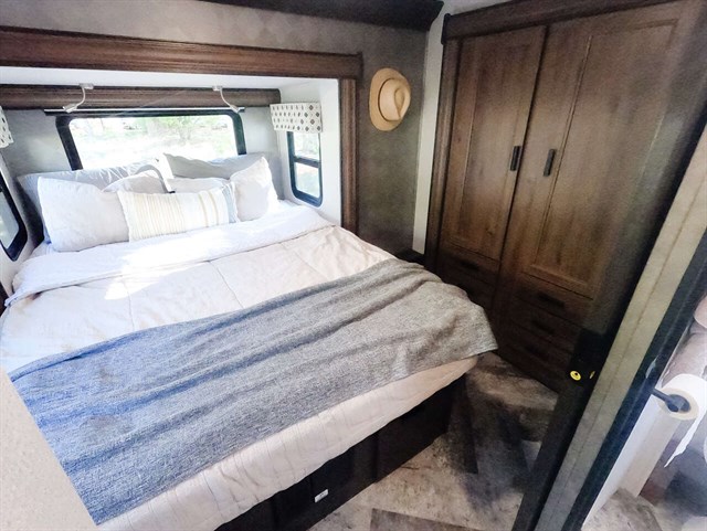 The 2021 Forester has the new 7.3 liter Ford engine. At only 27’ you’ll feel comfortable behind the wheel in minutes and can fill up and park pretty much anywhere (including most national parks!). The automatic leveling jacks make setup a breeze. In addition, you have side and rear backup cameras, lane assist, and Bluetooth throughout for connecting to your own device for navigation or playing your favorite tunes. Solar panels keep the batteries charged with an Onan generator for extra power when you’re off grid.