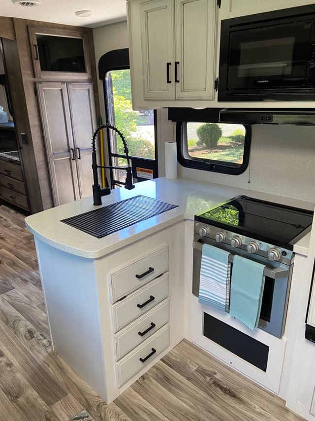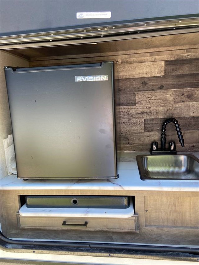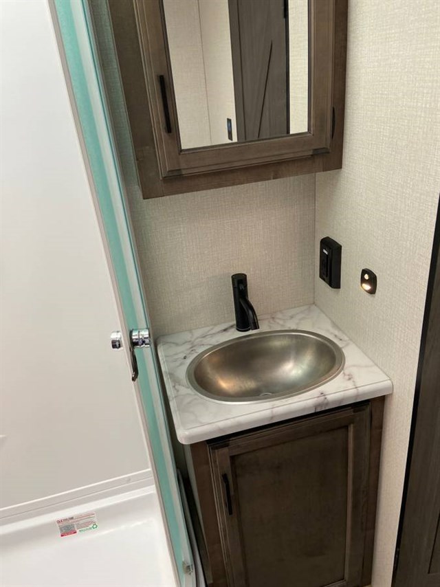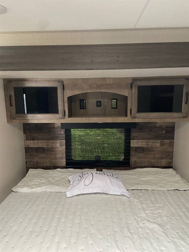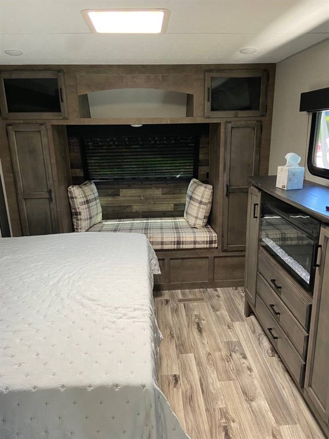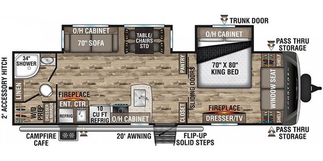 Highlights: Full Rear Bathroom, Two Fireplaces, Front Private Bedroom, Exterior Campfire Café, Pass-Through Storage