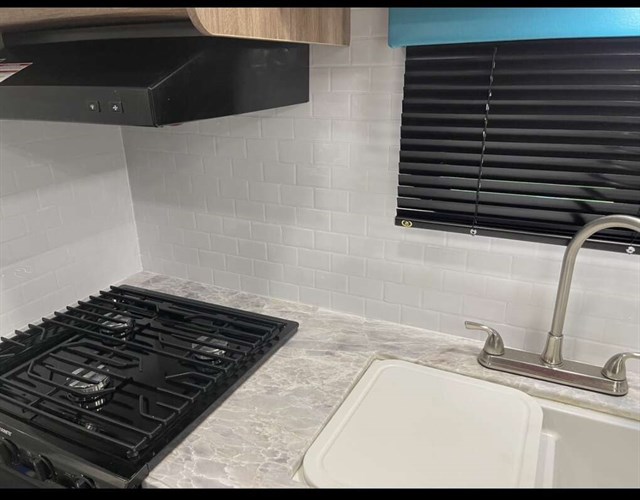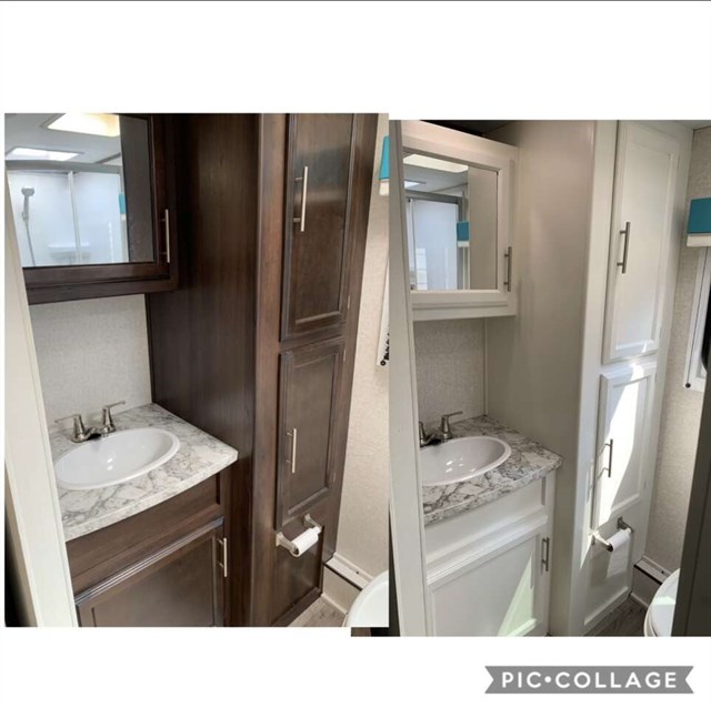 Travel trailer camper (rear bathroom). Adjustable lift Queen size master bed, couch that pulls out to bed, table that pulls out to bed. Sleeps 6. Arctic package. Hydraulic Leveling jacks built in. We did some upgrades. Before and after in pictures. Message me for viewing. Open to any reasonable offer.