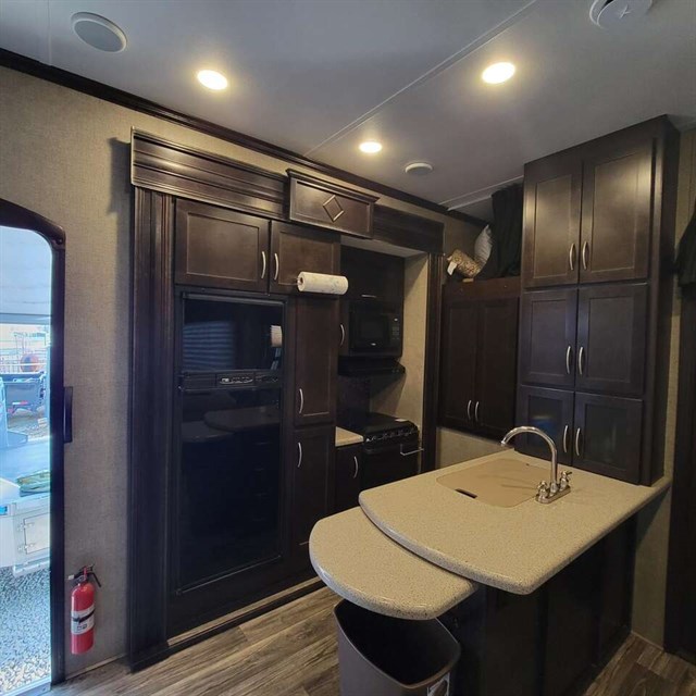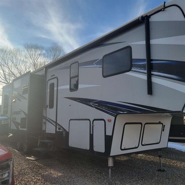 These Keystone Carbon toy hauler fifth wheels are the perfect units for you and your toys! There are plenty of indoor luxuries with the stainless steel appliances, the supercharged A/C, the residential in-floor heat-duct system, and the safety package that comes with your unit. The package includes a carbon monoxide detector, an LP gas detector, a smoke detector, and a fire extinguisher. You will be safe while you travel! Outside there are some cool features as well; there is an electric awning and an outdoor shower to rinse off all the mud from the day.
