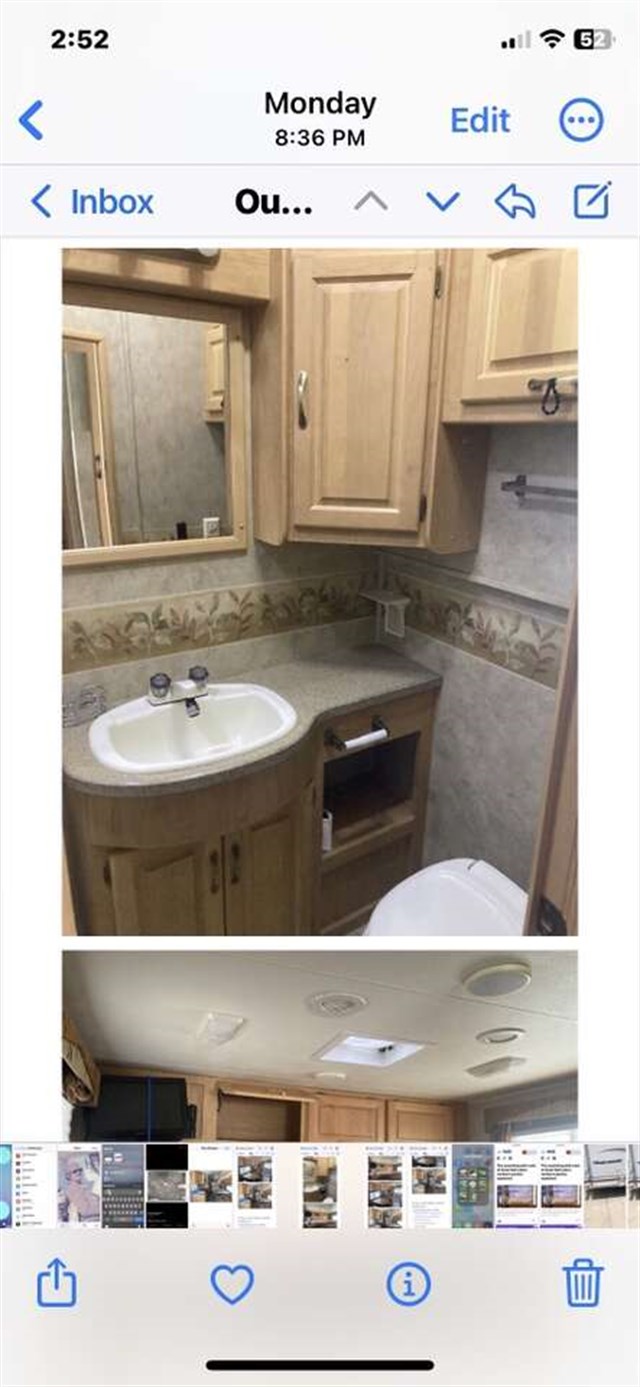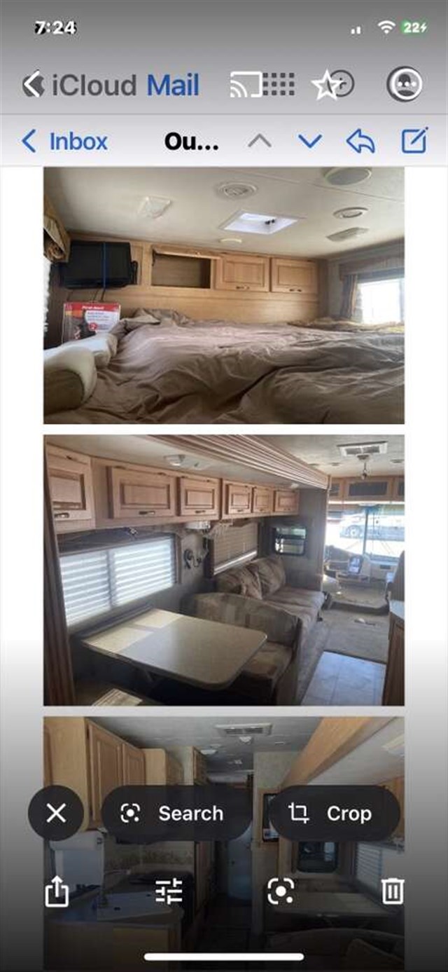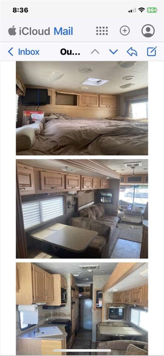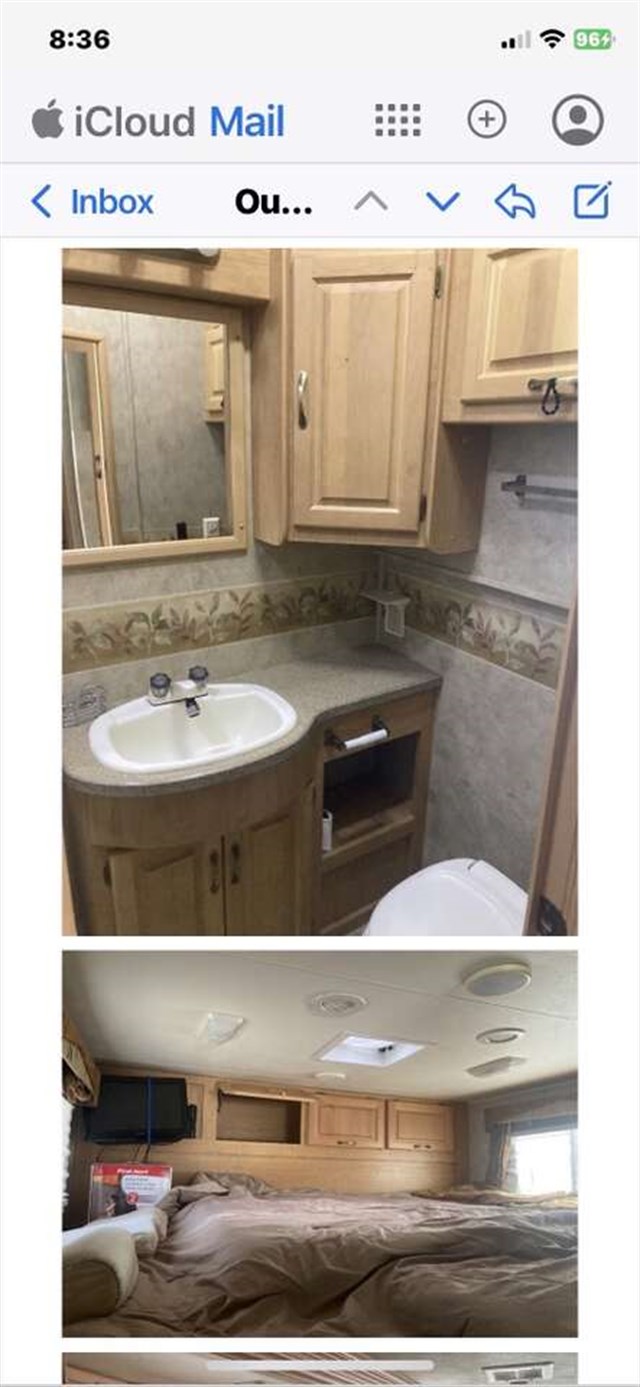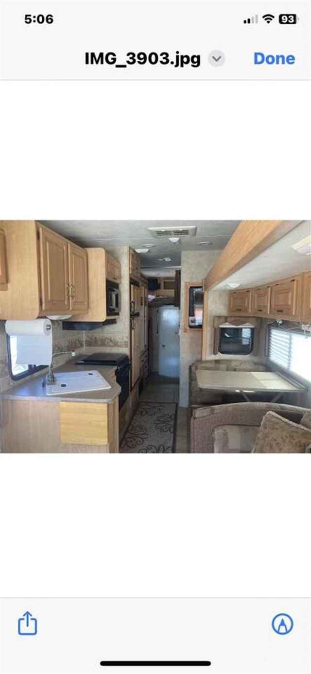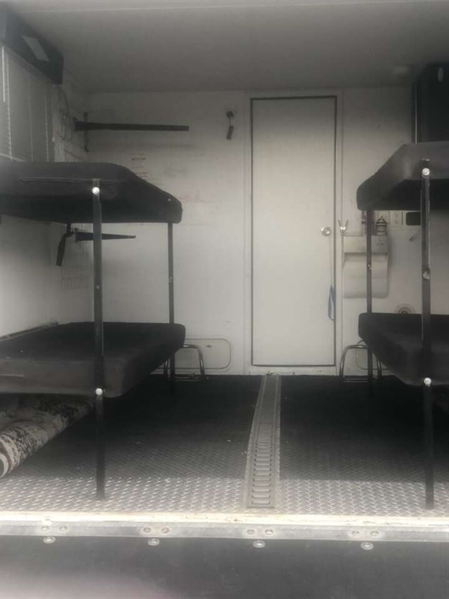 Has 70 gal water, 2 Airs, nice big slide out. Also in pic note 4 bunk beds in garage and car still fits, has loads of storage, including all accessories that I don’t need, 50 amp surge protector, long stuff to clean windows, escape ladder and other items.
