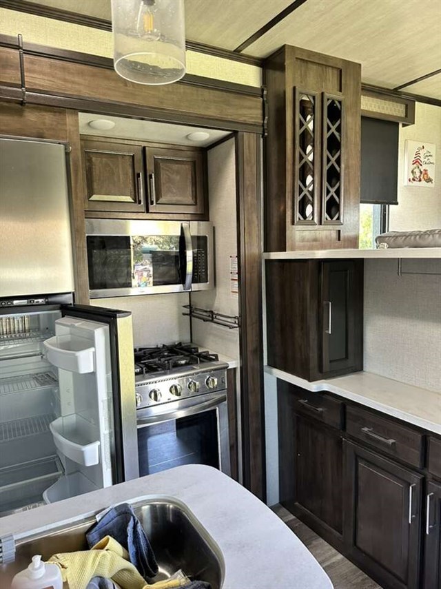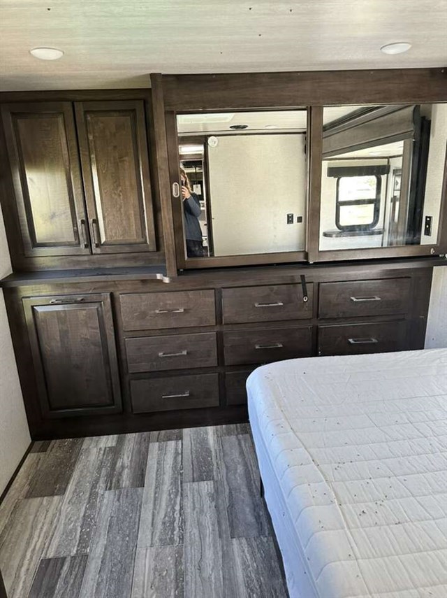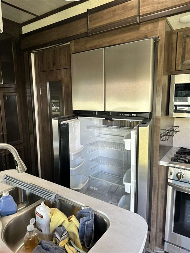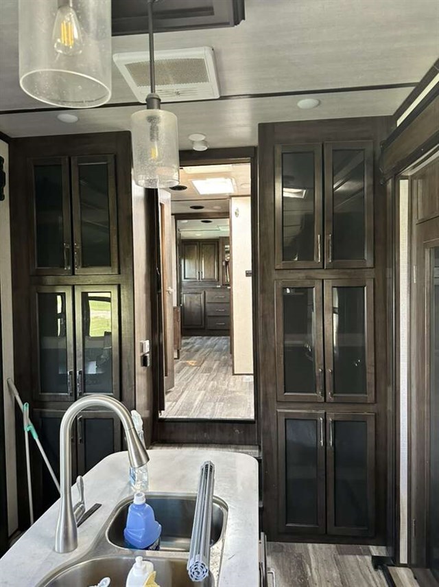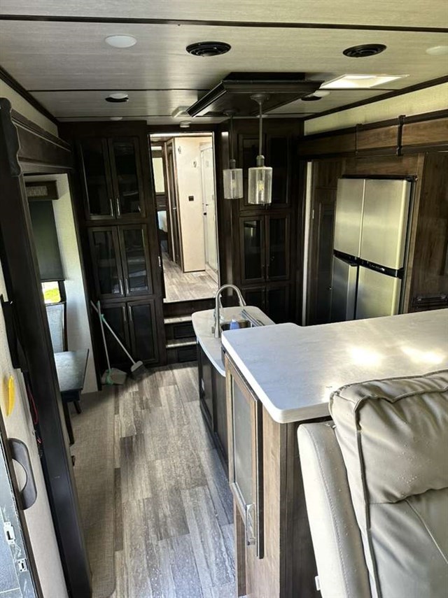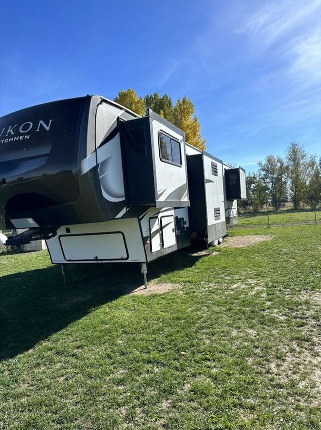Bought in September 2022 to live in while our house was being built. Used it for nine months through Idaho winter. Tons and tons of storage. Has underneath heat venting. Nothing will freeze. Two 50 TV's with added Roku sound bars. Large pantry and lots of cabinets for storage. We added a ventless washer/dryer ($2,100) and a custom king mattress ($1,800). Added hooks and storage throughout for spices etc. Large shower with drop down seat. This unit came with complete solar package. Has self leveling system. Inside and outside speakers. Two full size awnings. 5 slide outs, sleeps 6 and 3 AC units. This unit has only been towed 30 miles. From dealership to property. We just had all seals Checked and winterized. Comes with remaining 5 year extended warranty. Warranty covers everything with just a $60 co-pay(co-pay is one item or multiple items with a visit). Financing available! 46.5 ft - needs full ton to tow. Willing to deliver within certain distance.