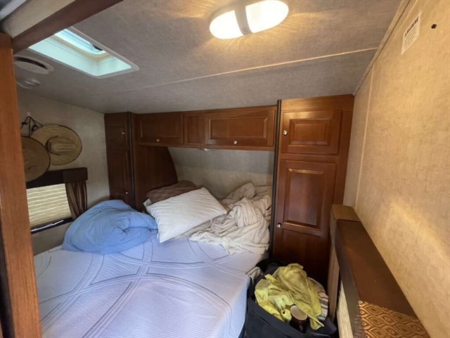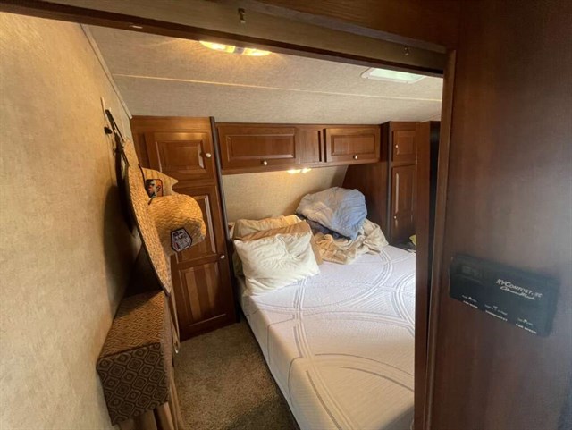 The front bedroom features a queen bed with closets on both sides for storage, and an overhead cabinet for additional things, plus so much more!