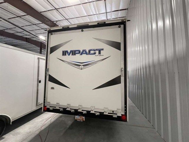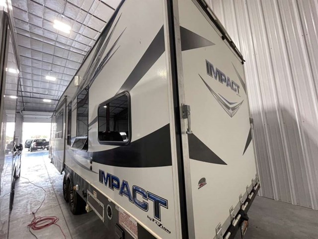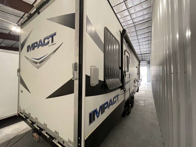 Enjoy every minute of your next weekend adventure both inside and out with this Keystone Impact toy hauler travel trailer model 300. This unit features a single slide for added interior space, dual entry doors besides the rear 8' garage door, a 10' cargo area, and a TV that swivels for living area and bedroom viewing!