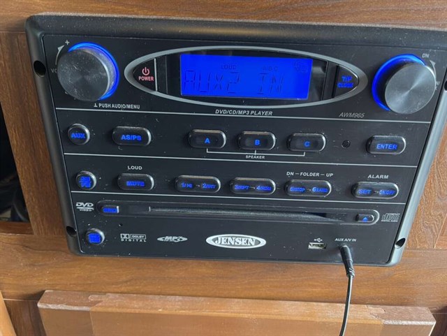 The entertainment center features a 40" LCD TV that rotates 180 degrees for viewing in the bedroom, as well as in the main living space.