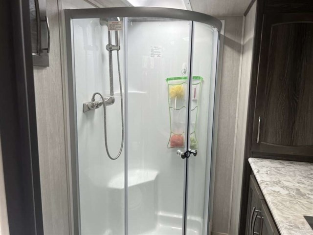 Put your toys in the 16' 8" garage and set out to the campsite with this Vortex toy hauler! Having two slides in this unit is what will allow you to live comfortably while you spend time relaxing on the two sofas and two lounge chairs. You'll definitely be appreciative that the power bunk can fold away after you wake up in the morning, and you can grab a refreshing glass of orange juice from the double-door refrigerator in the kitchen.