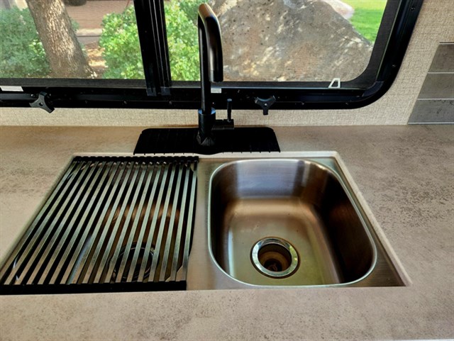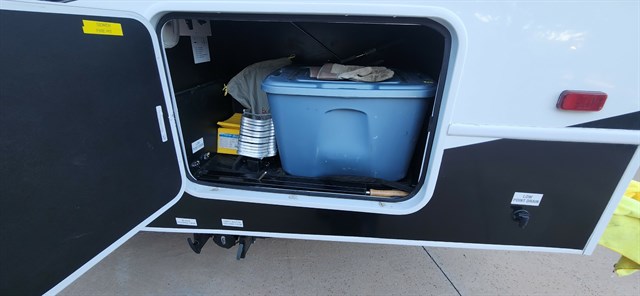 Additional items included are 30ft. electrical extension cord (30amp), Surge Guard, sewer system equipment, water hoses (both hot and cold season), and outside carpet. Also, Queen bed sheets and comforter, towel set, custom stove top cover, closet organizer bins, broom & dust mop, shower organizer, toaster, bowl set (3), eating utensils, TV cable, plate set and bowls (8), cutting board, sink strainer cover, and outdoor trash bin.