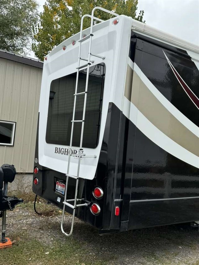 Up for sale is a nice big horn fifth wheel very low miles on it new 10 ply tires custom paint not stickers all painted generator used very little always hooked to power solar panels on roof satalite system all wired inn self leveling system nothing this fifth wheel don’t have building a cabin only reason we are selling it every thing works perfect!