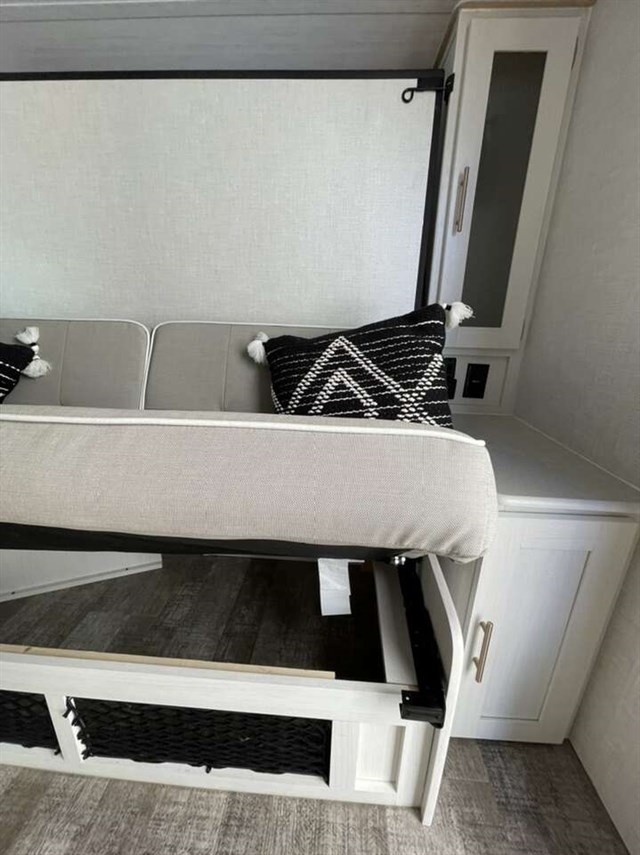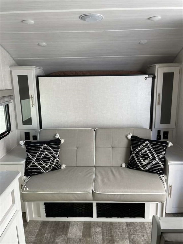Despite its compact size, the R-Pod 192 boasts a cleverly designed interior that maximizes space. The queen-sized Murphy bed provides great comfort but folds against the wall and converts to a sofa.
