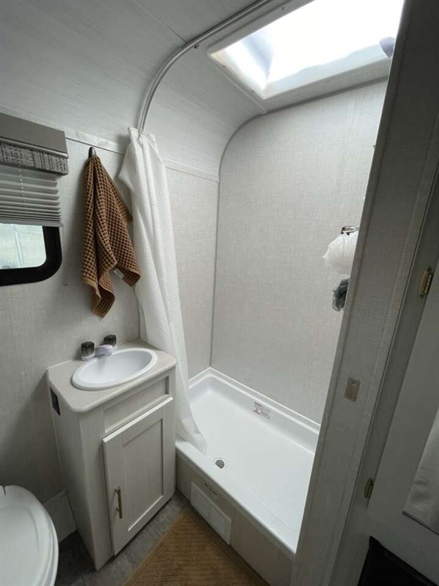 The private bathroom includes a shower, toilet, and sink, so you can freshen up no matter where your adventures take you.