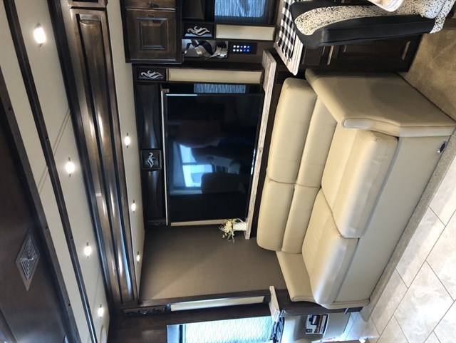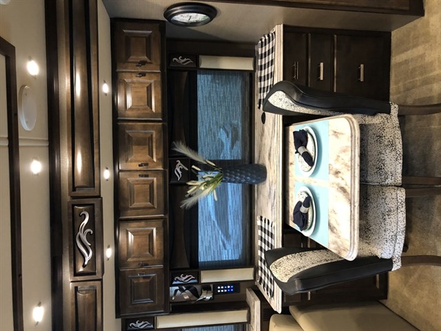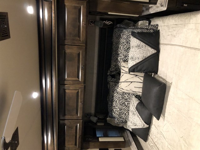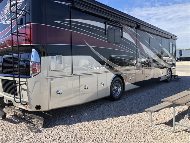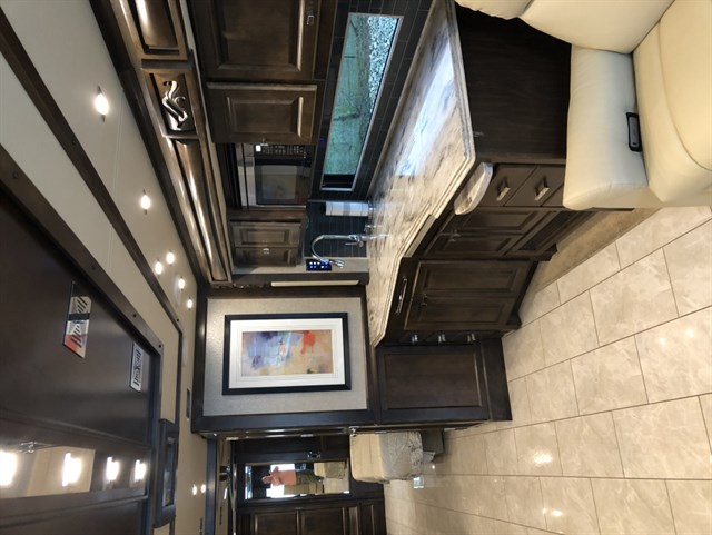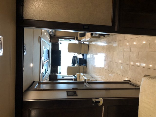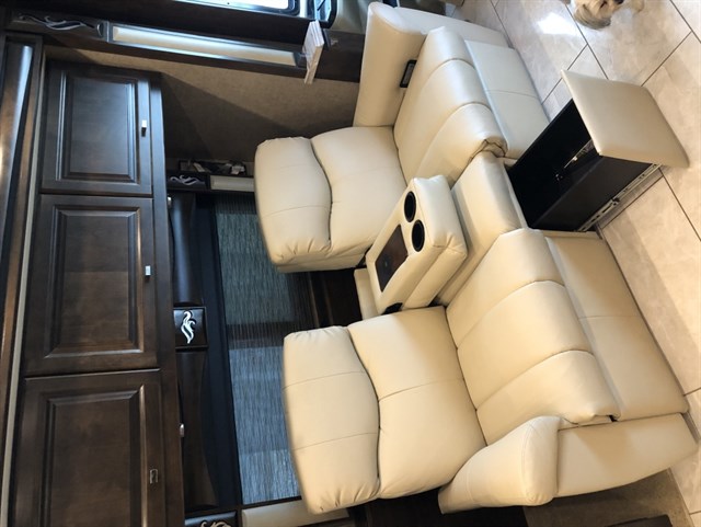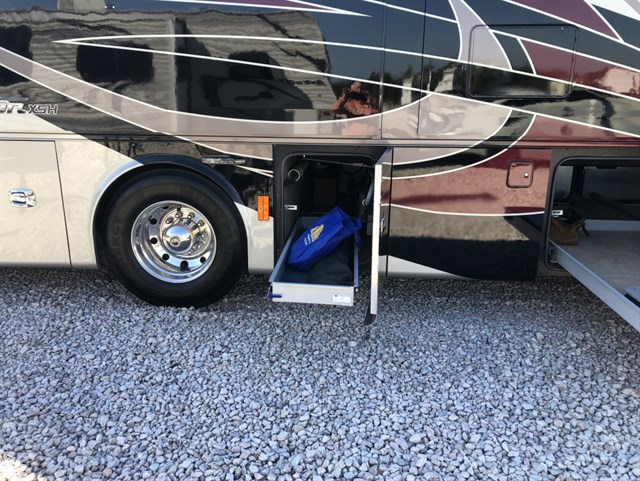 This coach is in excellent condition with lots of factory options along with many owner added options. Heated floors, dinette with 4 chairs and work station, solar panels, wi-fi ranger, in motion satellite with 2 Wally’s, 4 TV’s includes outdoor TV, king bed with memory foam mattress, 2-large bay slide out trays and residential fridge and 2 new Michelin tires on front. Also 2 new chassis batteries and 6 new house batteries installed. Also replaced washer with new updated Splendide 6 months ago. Gerard remote control awning with LED lights added to rear slide for complete protection on passenger side while sitting outside. Installed by Gerard in Red Bay. Replaced theater seating with real Ultra Leather Amish made power sofa recliner with power headrest and USB charging for extra comfort. Also added Dish Travler Antenna in Red Bay. Magna shades for windshield along with driver and passenger windows. Magna shade tire covers. Carpeted dash cover and cockpit mat. Additional portable King Dome. Snap pads on leveling jacks. TST tire monitor with 10 sensors and booster. Blue Ox tow bar. Roadmaster Defender for towed vehicle protection. M&G air brake components for towed vehicle. Slide tray installed on small bay that’s great for golf clubs. Bulldog surge protector. 50 amp 30ft ext cord. Under coach Bluetooth LED lighting.