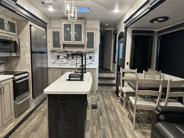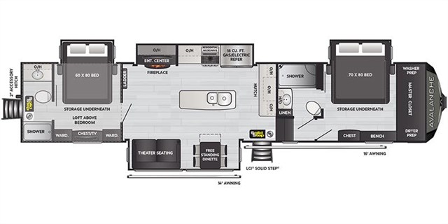 With any Keystone luxury full-profile Avalanche fifth wheel, you will experience wide-body construction that allows you to stretch out and stay awhile during any season thanks to the Polar Pack All Season Protection that includes a heated and enclosed underbelly, an Astro foil reflective layer on the roof, front and rear walls, and two static attic vents, plus more! The interior offers hardwood slide out fascia with wood accents, crown molding, plus your choice of modern interior design. There are many more Keystone exclusives, like the Tru-Fit slide construction, the in-floor heating ducts, the 4G LTE and Wi-Fi prep, and much more to bring you a full-packed, luxury fifth wheel!