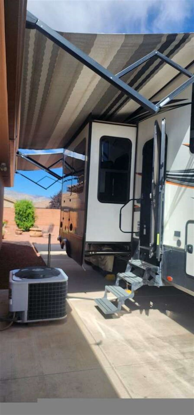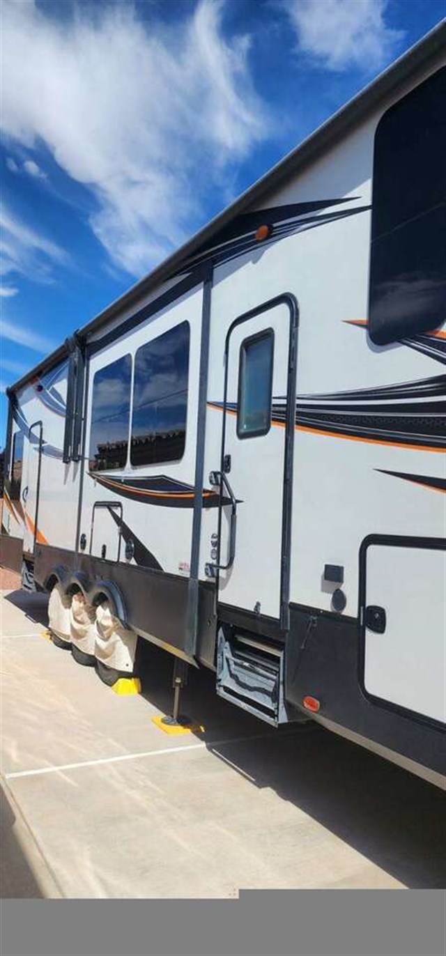 2017 Momentum toy hauler. 14 foot garage, Generator, full size fridge, fireplace, leather reclining couch, happy jack bunks in garage, bathroom in garage, washer dryer hookups in garage, 4 Tvs, master bedroom, garage, out side, and living room. Self leveling, polar package. Auto open/close vents, central vacuum. Cd stero, Custom wrap decal package on outside. 3 slides, Located in St. George, UT. Perfect for a 4 seat razor in garage. Central vacuum. This toy hauler has all of the luxuries of home. Build memories with your family in this beautiful RV. New tires and new batteries. Black out blids and phone chargers in couch. Thank you for viewing and please call the number below for more info.