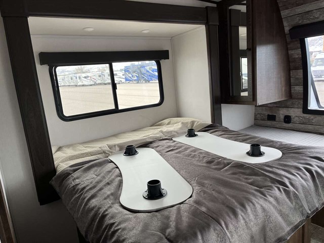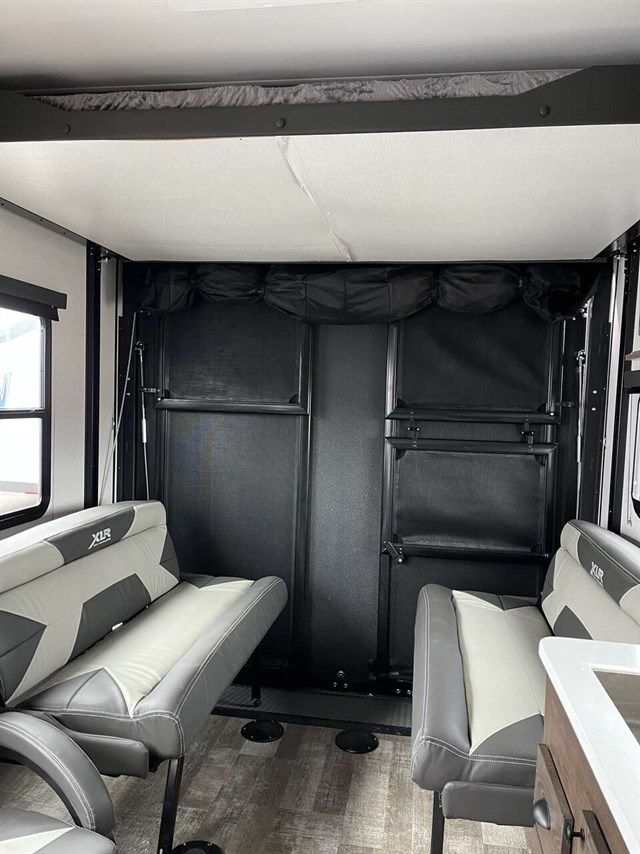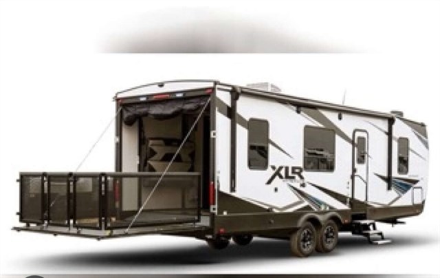 Forest River's XLR Hyper Lite toy hauler is affordable, half-ton and three-quarter-ton towable, lightweight, and very functional! These units are the epitome of action camping, and they are ready for the adventurer who wants to get out and live life to its fullest. The XLR Hyper Lite has been XTRA BUILT which means that you will have a unit that is simply built right to last you through all of your toughest excursions. You will be thrilled to find some of the latest technology included, like the Winegard Air 360 antenna with prep for WiFi & 4G LTE, the dual-zone sound bar with built-in subwoofer, the exterior speakers, the USB charging stations, and the 39" TV in the living area. The garage is completely primed and ready to go with its 20-gallon fuel station, 5,000-LB cargo tie-downs, insulated floor, black rear privacy screen, insulated weatherproof ramp door, and ramp patio cable kit. Plus, the VIP party deck and solar package!