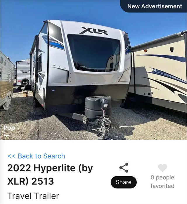 2022 XLR Hyperlite 2513 xlr used twice, all warranty done, 5 year extended warranty, heated tanks, spray on coating. exterior shield with 5 year warranty to prevent fading, microbe repel the inside, central air vacuum, two air conditioners, solar system, Yamaha 5500 generator with remote start, 20 gal on board fuel tank, sleeps 6, two recliner chairs, electric fire place upgraded master bed, party deck with railing and gate, 16000 lb equalizer hitch and many more. I have $65,000 in this asking $45,000 More live pictures on request.