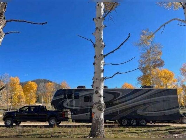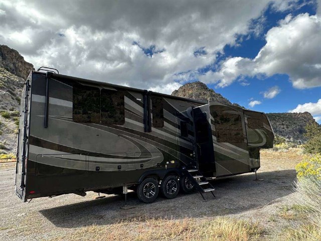 We are selling an excellent travel trailer, starter or home one wheels. This trailer has been lightly used, no smoking, no pets inside. Everything is in pristine condition. It has an onboard Onan Generator, all electrically controlled inside. Self leveling jack systems, extra fuel storage tank to fill up ATV's, dirt bikes etc. Has all the bells and whistles. We are just selling it to get a bumper pull. Top of the line, family room with a power sliding tv in the entertainment center console. Heated, massaging chairs, kitchenette, island bar, full size fridge/freezer.