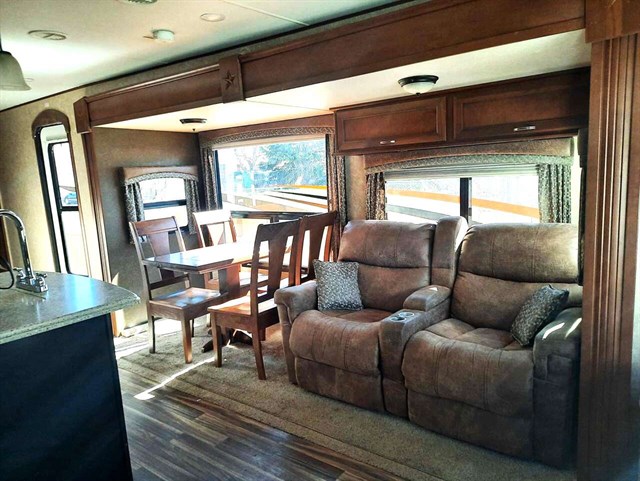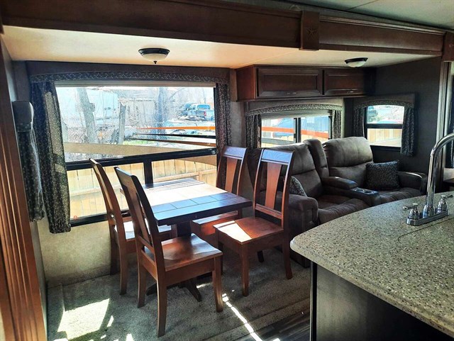 2016 gently used in near perfect condition. With an large awning to shade the front side, a full perimeter winter skirt and 3 slide outs, making it a spacious place to either live in or for fun family camp outs. Not used with any pets, children, nor has it been smoked in. Lots of closet/storage space, full bathroom, washer/dryer combo, dining table, long couch containing a bed within, 2 recliners, an island, fireplace, 2 TVs, and kitchen appliances. This Travel Trailer is fully inspected (Sep, 2023) passing with perfect condition, not a single shortcoming.