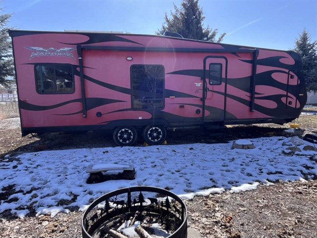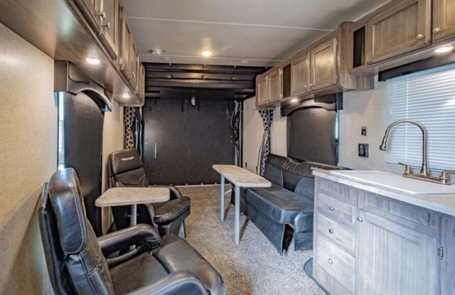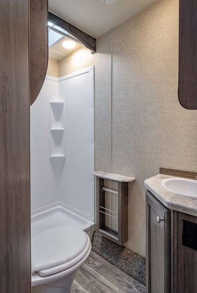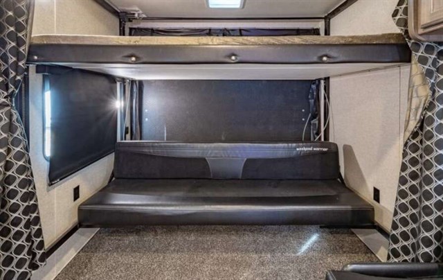 For your next trip that includes camping and riding the trails you will want a Weekend Warrior Superlite to transport your off-road toys! You will enjoy the convenience of bringing your camping gear and your big riding toys with you. In the cargo area there is a drive-on wheel box which allows for additional storage space. Inside enjoy the view from the large windows, plus there is a "Star Gazer" skylight in the bedroom and a skylight over the shower. A few other conveniences include the infinity mirror and fold-down desk combo, flat panel hardwood cabinet doors, and USB chargers in the bedroom and slide out.