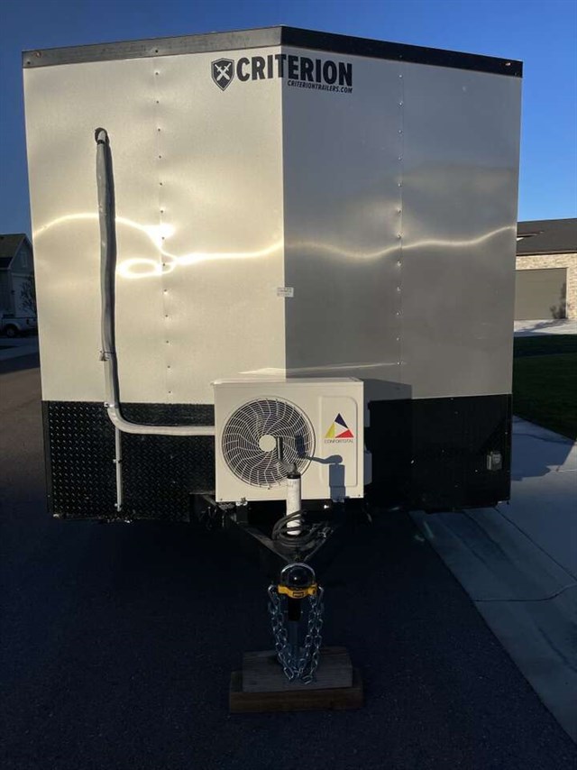 2022 Criterion 8.5x20 enclosed trailer that has been custom built into a toy hauler. Ordered this trailer with factory windows, poly bead flooring and 6 in extra height. Walls and ceiling are insulated with custom ceiling panels and dimmable led lights. Custom front cabinet, custom full size fold down bed, sidewinder couch bed and folding bunk beds makes it easy to sleep 6. A mini split hvac system has been installed and runs off of 110v power with ease to ensure comfortable temperature in any weather. 12v power inverter installed, shore power outlet for 110v 30amp power as well as a 50in tv with sounds bar and blue tooth sub woofer. Folding bar top in the back section with 3 bar stools included. Leveling jacks on all four corners and loading jack stands in the rear. Sway hitch brackets installed and hitch is included. Gm factory back up camera and interior camera installed as well. We hauled our 4 seater can am x3 with this and have enjoyed it very much. Don’t use it as much as we thought we would so it’s time for it to find a new home. Feel free to call or text for more info as I know there are things is missed. I also have a ton more pictures of the build that I can share if wanted. I also towed this with a 1/2 ton pickup and it towed just fine. Open serious offers.