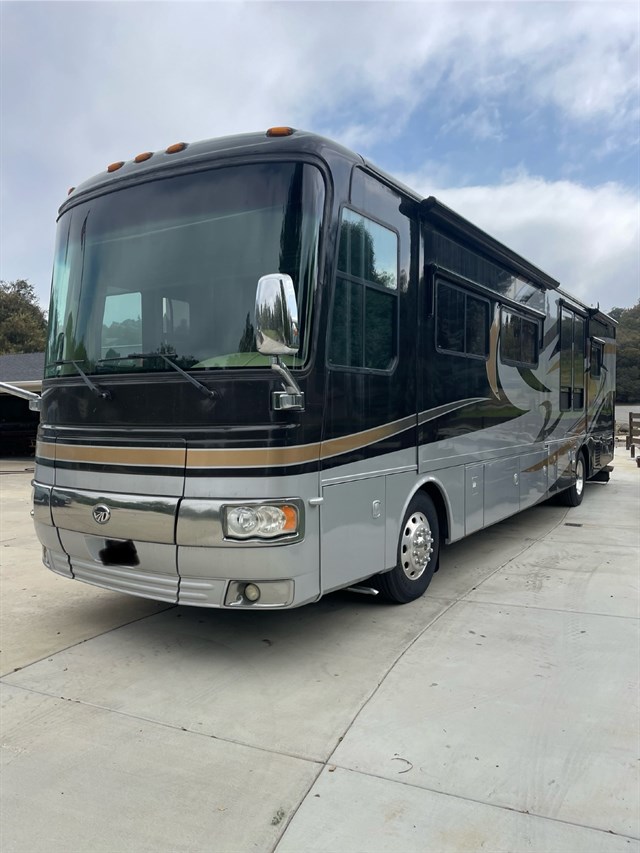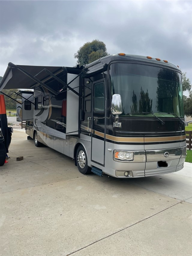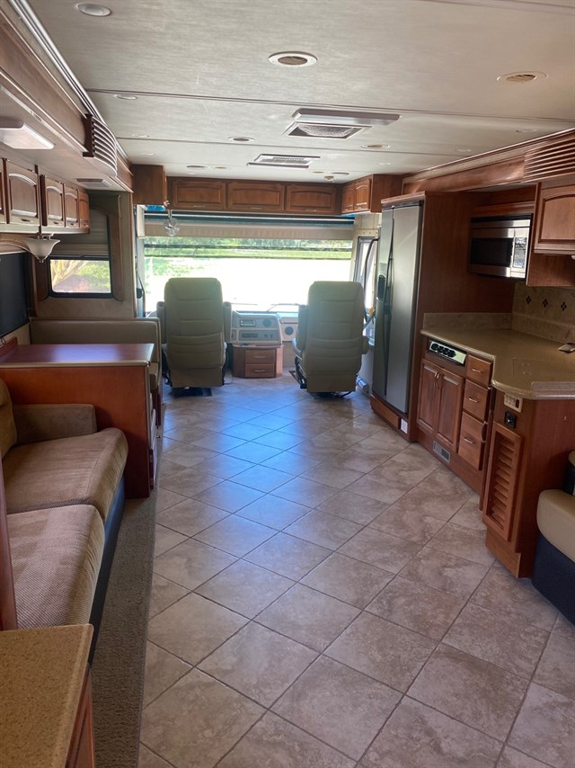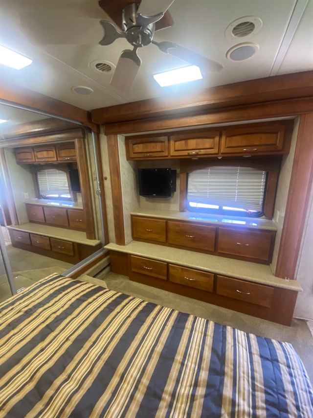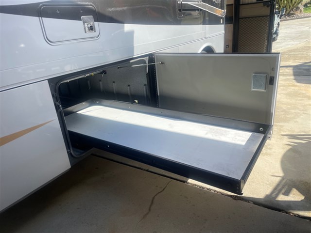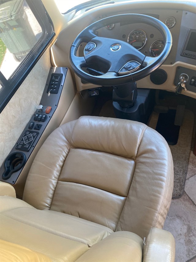 A very clean but some normal wear new slide covers all 4 has window awnings on driver-side day and night shades interior all the big windows including front windshield very big storage under coach with one big sliding tray 8k diesel generator residential refrigerator smart tv