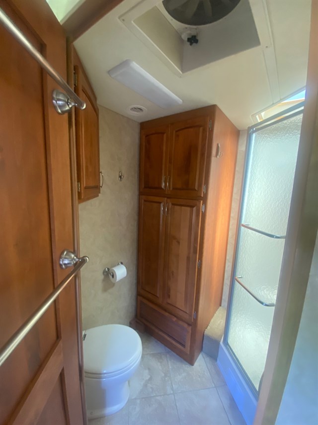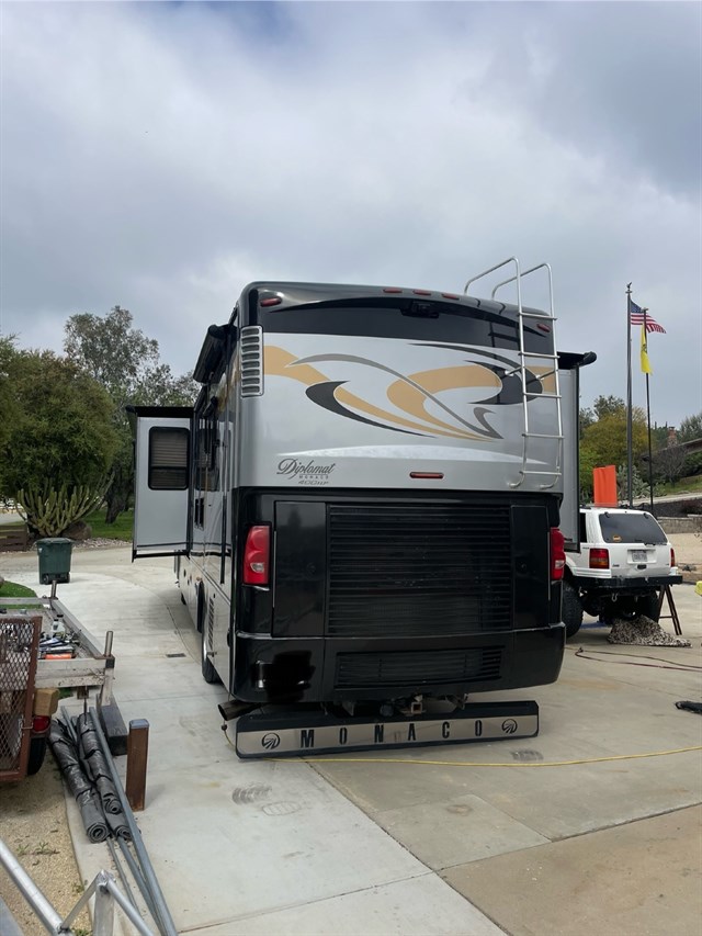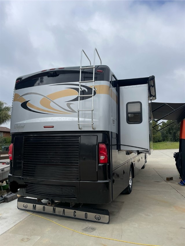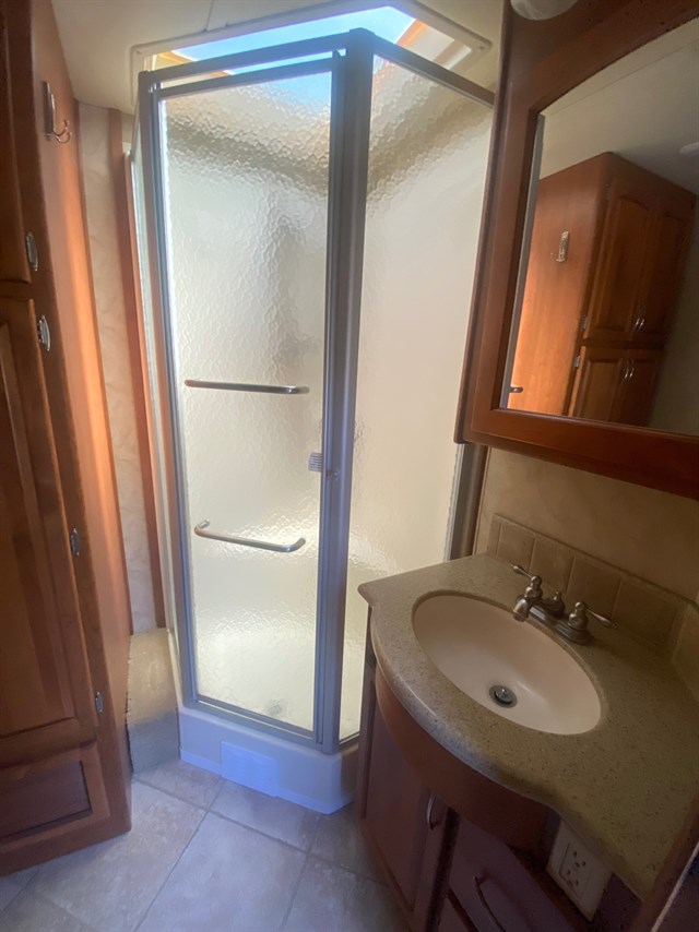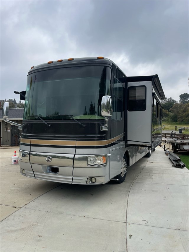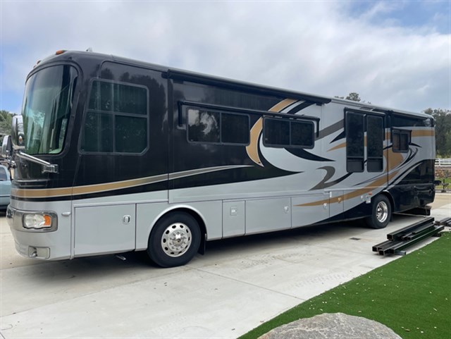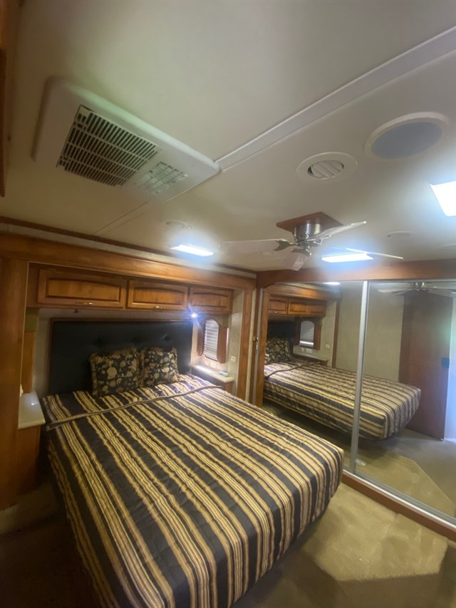A very clean but some normal wear new slide covers all 4 has window awnings on driver-side day and night shades interior all the big windows including front windshield very big storage under coach with one big sliding tray 8k diesel generator residential refrigerator smart tv