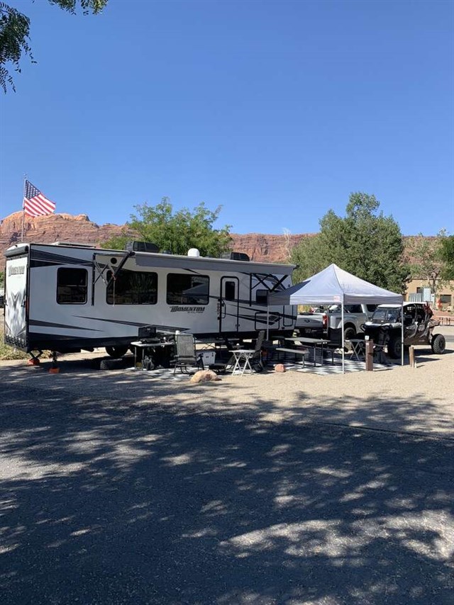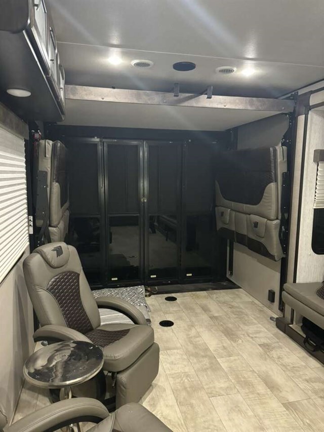 Just imagine you are unloading your off-road toys at your favorite destination RV park. There is 16'6' of space for your toys giving you plenty of room to take everything you need, plus some! You have to stay fed to keep the fun going so choose between using the inside kitchen amenities or outside kitchen, the choice is yours! You will have three sofas and two Euro chairs to relax on as well as a Happi-Jac power bunk and a queen bed when it's time to sleep.