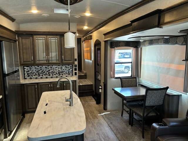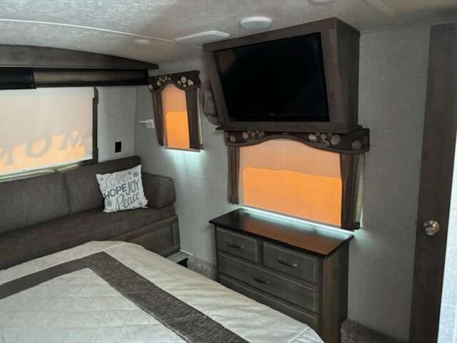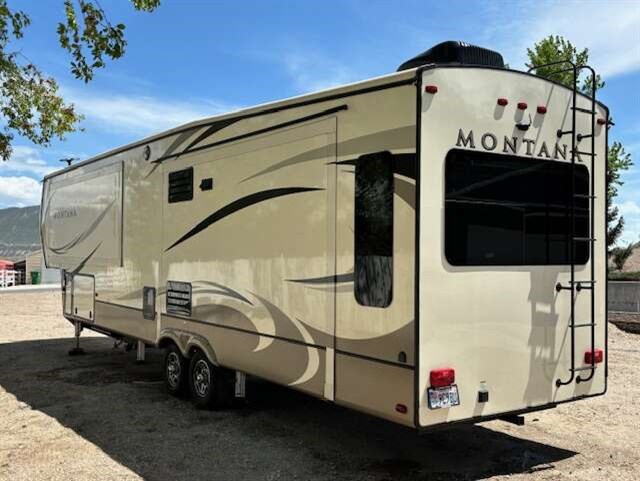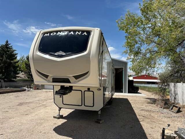2018 Montana 5th Wheel with Onan 5500 Watt generator, (only 4.7 hours on it), Furion camera. Auto leveling, outdoor TV, heated tanks, 4 season living, 2 AC systems, rear AC unit has a built in heat pump. Residential size refrigerator operates on both electric and propane. two large outdoor awnings, LED lighting both inside and out. Indoor, outdoor speakers, built in stereo system with blue tooth capability. This unit is well maintained, stored indoors when not in use. 5th wheel hitch, rock-tamers, tri-pod included.