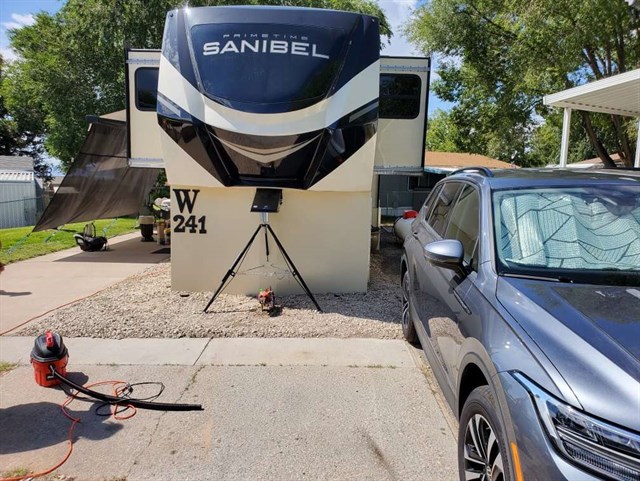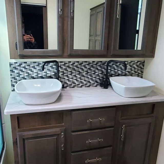 Very well kept front living room bath and a half 43ft 5th wheel. Many extras including washer dryer key less entry tank less water heater new carpet. Unit is equipped with stainless appliances new commercial kitchen faucet vessel sinks. Very clean inside and out. More photos to come unit is currently set up in park.
