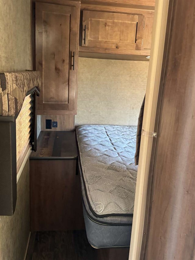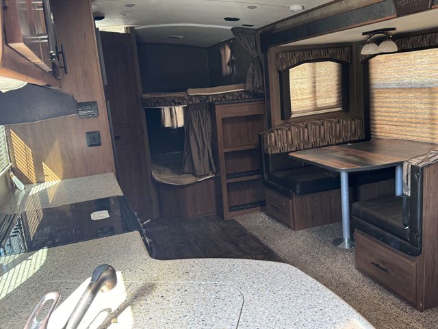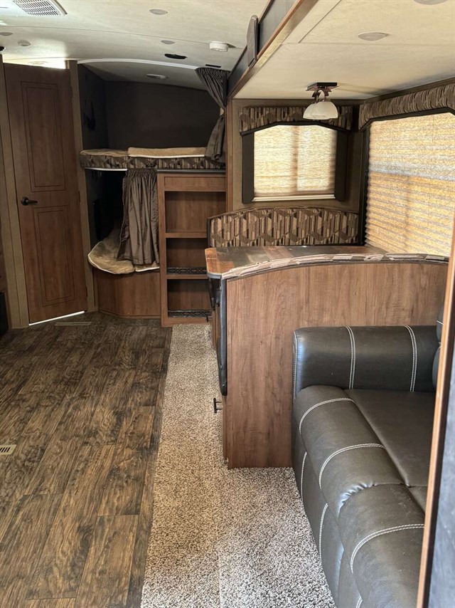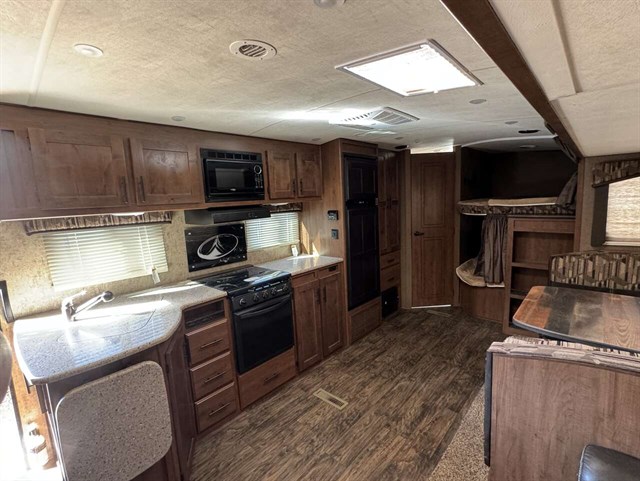 If you have been dreaming about a travel trailer with bunk beds for the kids and a sleeper sofa for their friends, stop dreaming! This Timber Ridge 27BHS actually provides enough sleeping space for 8-10. Just imagine looking out the window at the views before and after you hike, bike, or walk around the campsite with your family. Afterwards you can get cleaned up in the front bedroom before relaxing in the living area, or cooking meals in the kitchen. You will find plenty of storage throughout including under the bunks through the garage storage door. It's time to pack up the family and head out!