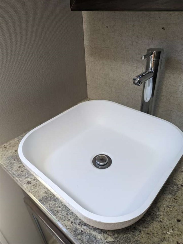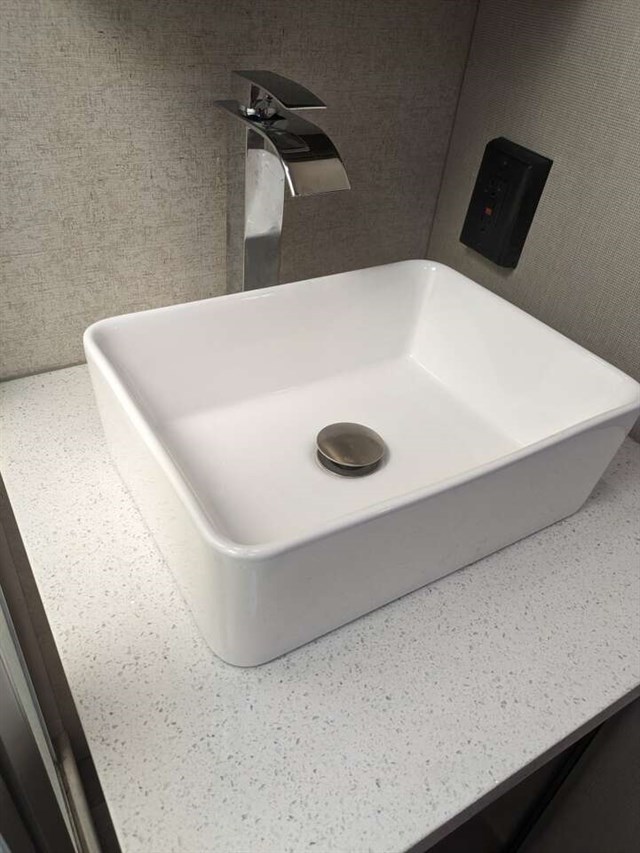 The rear bathroom has a brand new RV toilet. In the master I decided to go with a regular household toilet.