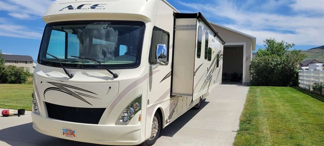 2018 THOR ACE Model 32.1 is approximately 33 ½ feet long. The A.C.E. is the class A & C Evolution, . It Combines many of the most popular features of a class A motor home and a class C motor home to make something truly unique. Ford® F-53 Chassis - 6.8L Triton® V10 Engine, 320HP, 460 lb.-ft. Torque - TorqShift® 6-Speed Automatic Transmission with Overdrive