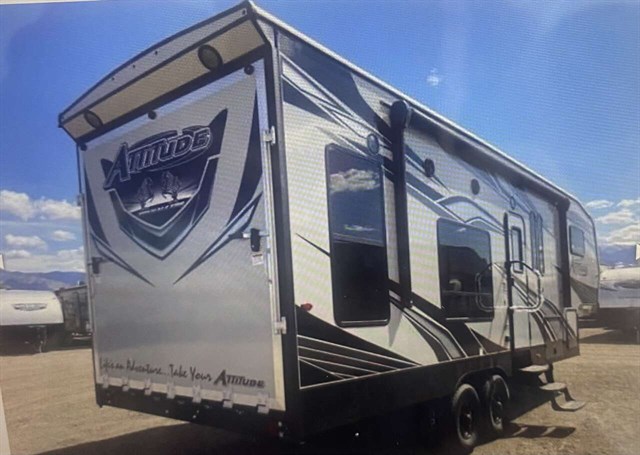 With the Eclipse Attitude Wide Lite toy hauler fifth wheel you can camp in comfort and style! Along the outside there is a 40 gallon fuel station so you can keep the fun going all weekend long! There is a gray fiberglass front cap with LED lights and gray fiberglass sidewalls. The ramp door with cables have a 3,000 lb rating so you can easily load your toys of choice. Inside you will find an electric bed, a lighted solid surface galley top, a drop range with glass cover, and a pillowtop mattress with bedspread and shams. In the galley and bedroom you will also find a USB charger and more!