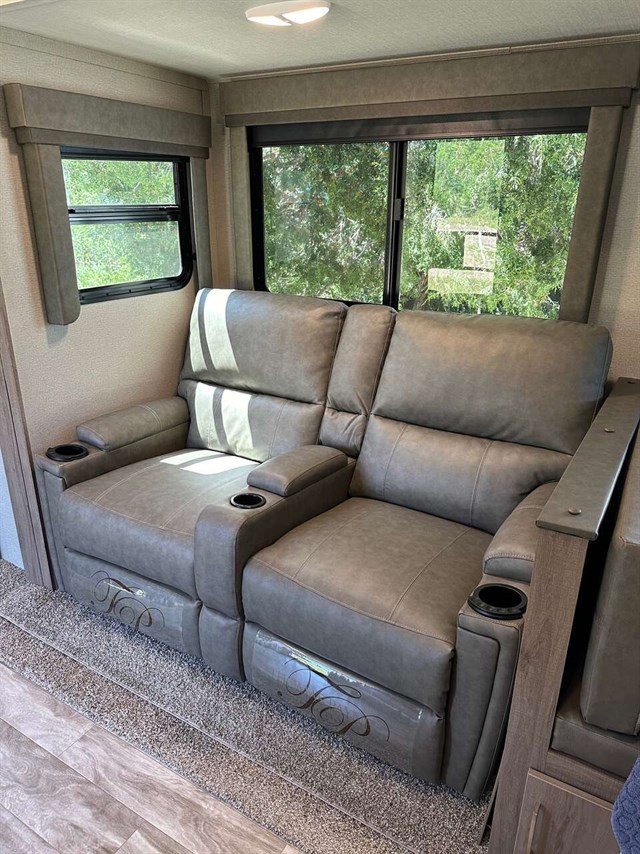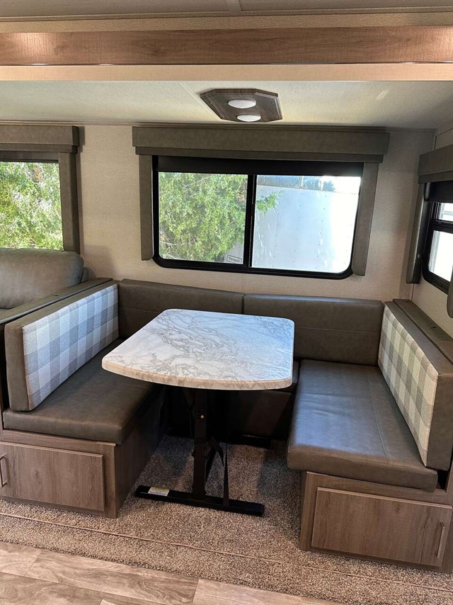 With any Imagine by Grand Design the construction includes a laminated aluminum framed main floor, rear wall, side walls, roof and end walls in the slide rooms and floors, plus a one-piece roof membrane giving you years of lightweight towing to your favorite destinations. Best in class storage is found in the exclusive drop frame unobstructed pass through storage, and the Universal Docking station offers an all-in-one location for utilities and hookups, plus you will find industry leading tank capacities and extended season camping with the mandatory four-season protection package. Inside you will experience residential cabinetry and a pull-down sprayer kitchen faucet, upgraded residential furniture and countertops, plus much more with an 81" radius ceiling for a spacious interior. Choose your favorite Imagine today, and start adventuring in a lightweight and comfortable trailer!