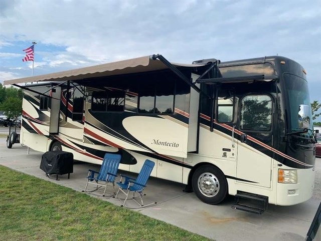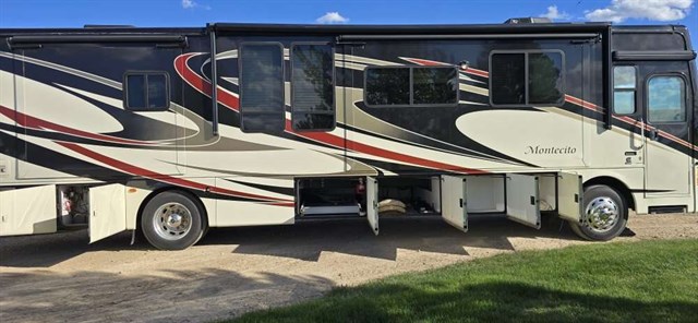 Only 25,000 miles. Cummins diesel. O an 8000 quiet run generator only 400 hrs on it. 4 slides, king bed, 2 pull out beds, big double fridge with ice maker, walk through bathroom. Brand new 2000 Watt inverter and panel, and auto generator start. Auto leveling. 100 gallons fresh water Recent oil change. Stored in shop. Ready to tow. So much more.