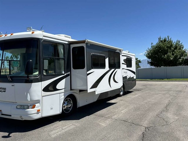 This coach is in excellent shape, we have had it for 4 years. Recent upgrades include new queen pillow top mattress, new pull out mattress, 6 new AGM batteries, Rear Brakes and axle seals, 6 new 255/70R22.5 16 ply Toyo M154 tires, 4 new aluminum Alcoa wheels, Top hat lugnut covers, 2 new slide out awning covers, kitchen faucet with sprayer, full LED light conversion headlamps, clearance lights and taillights, roof resealed, new awning and new paint on front and lower cabinets.