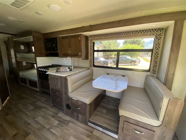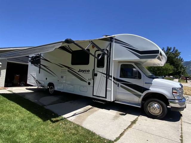 2020 Jayco Redhawk 31F Class C Motorhome 32 foot, perfect fit for National Parks and State Parks. RV can sleep 10 people Two queen size beds, One full size bed and Two bunk beds and table bed. Easy to drive. Feels like you are driving a truck or a big van. The kitchen features a refrigerator, freezer, stove, oven, microwave, and sink. Includes one TV and DVD player, speakers inside and out, A/C and heater, outdoor shower, electric awning, backup camera, GPS. Luxurious leather seats which are super comfortable while driving to your adventure. Extra spacious entertaining living room with slide out.