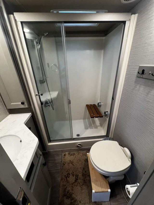 This is the most amazing 5th wheel trailer. We absolutely love this trailer but need to down size. The trailer lay-out is perfect, bathroom is big and master bedroom works great. We added solar and a generator. It is loaded with everything even central vac. If you’re interested in the trailer please come check it out.