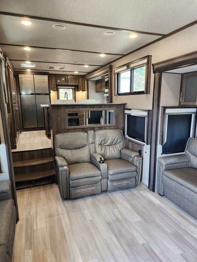With each Solitude fifth wheel by Grand Design, you will receive refined residential finishes and affordable luxury for your extended stays or weekend getaways. From the solid foundation that rests upon an exclusive superchassis and the maximum insulation to the taller ceilings, taller and deeper cabinets, and the power reclining theatre seating with removable swivel tables and heat and massage, you will be impressed! The pet dish drawer, the Stealth AC system, and the Weather-Tek package that allows you to travel during any season will also give you many more reasons to love everything about your Solitude. It's time to redefine luxury living wherever you decide to land.