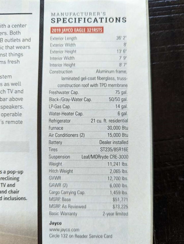 Health diagnosis has stopped my glamping!!! Selling my beautiful Jayco. Solar, protective coating, back up camera, awesome stable stairs. King bed with queen fold out couch. Too many extras to mention!!!!!! Centerfold in popular magazine! Beautiful!