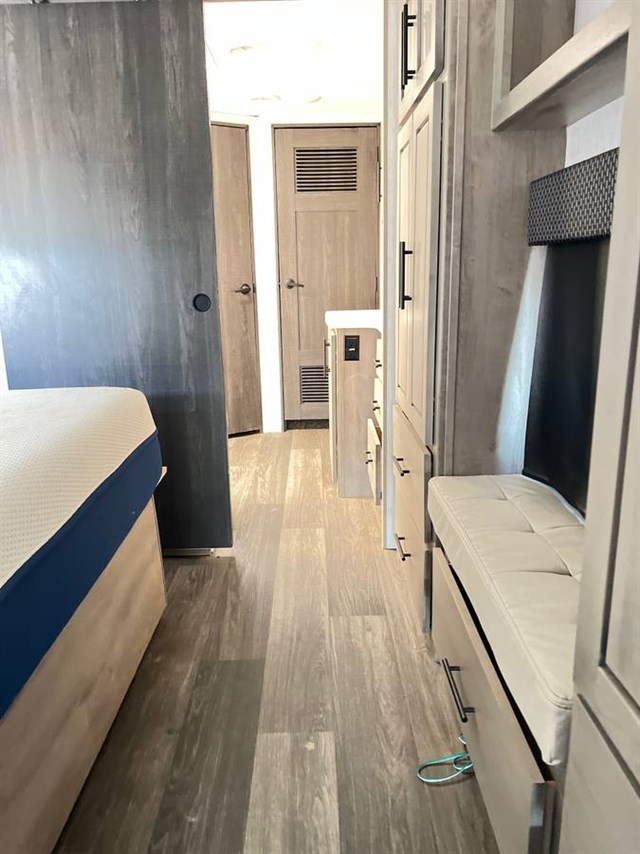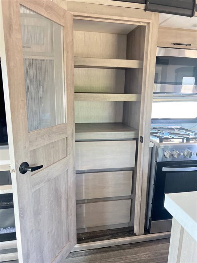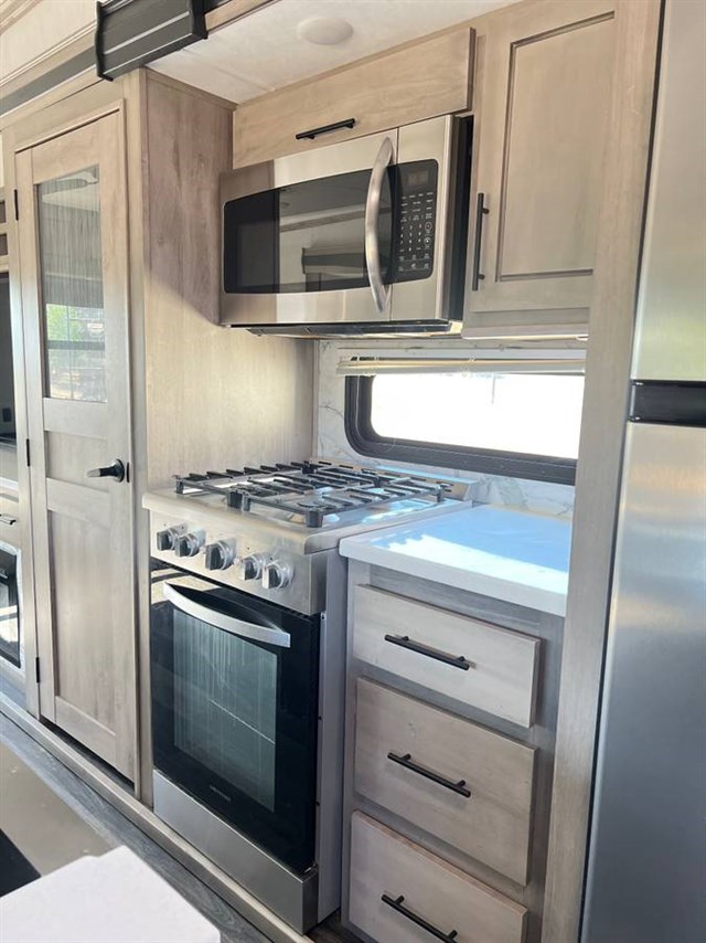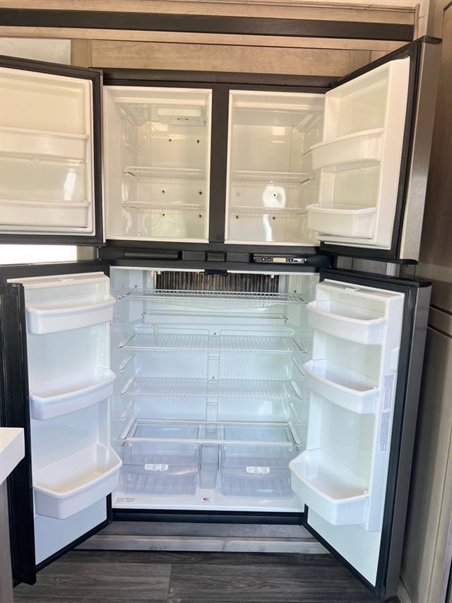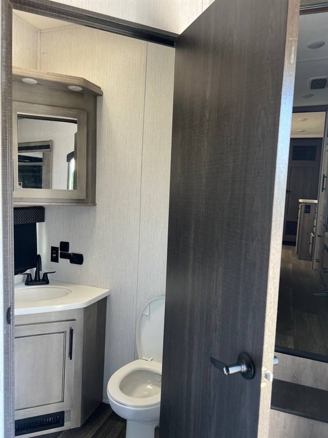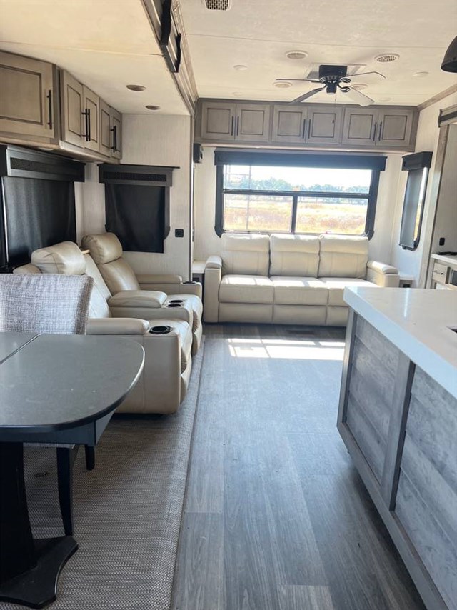 With a bath and a half, everyone will stay clean in this Heartland Big Country 3702 FB fifth wheel! You will feel right at home with the front large wardrobe that you can access by walking through the full bathroom from the private bedroom. Inside the private bedroom there is a king bed for you to enjoy a good night's rest on and down the stairs to the right is the half bathroom conveniently next to the kitchen. The kitchen island provides extra counter space to prepare a home-cooked meal and the large pantry is big enough to store everyone's favorite snacks. Once you've grabbed a snack, you can either play a game at the free-standing dinette or head to the living area and relax on either the theater seating or the rear sofa!