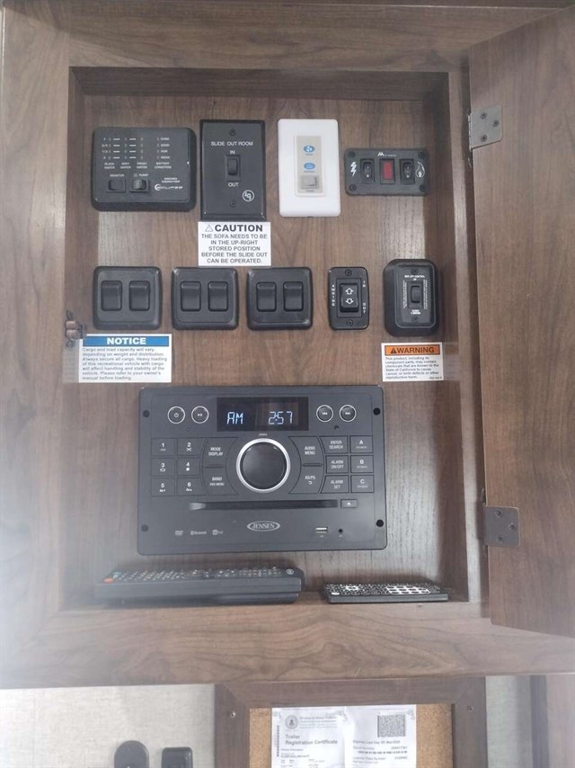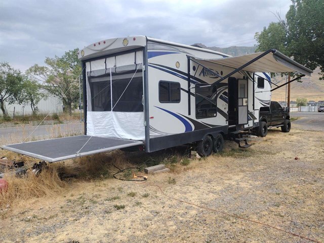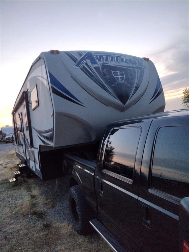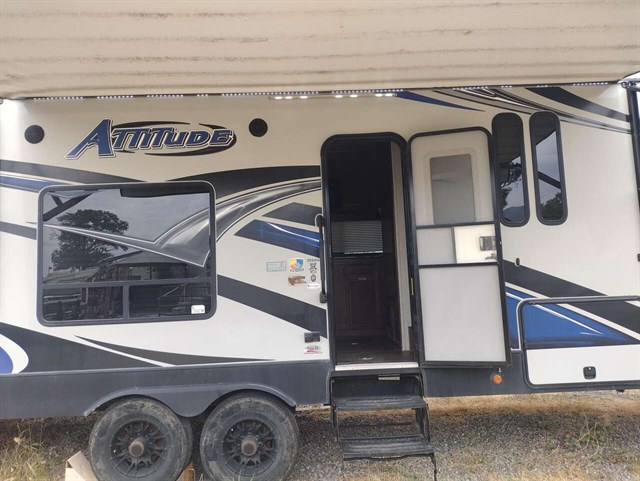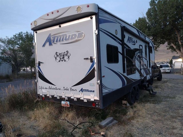 With the Eclipse Attitude Wide Lite toy hauler fifth wheel you can camp in comfort and style! Along the outside there is a 40 gallon fuel station so you can keep the fun going all weekend long! There is a gray fiberglass front cap with LED lights and gray fiberglass sidewalls. The ramp door with cables have a 3,000 lb rating so you can easily load your toys of choice. Inside you will find an electric bed, a lighted solid surface galley top, a drop range with glass cover, and a pillowtop mattress with bedspread and shams. In the galley and bedroom you will also find a USB charger and more!