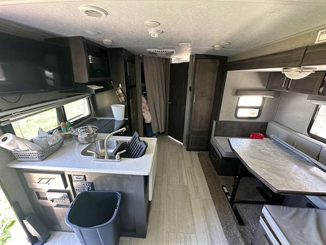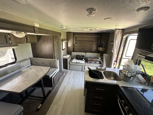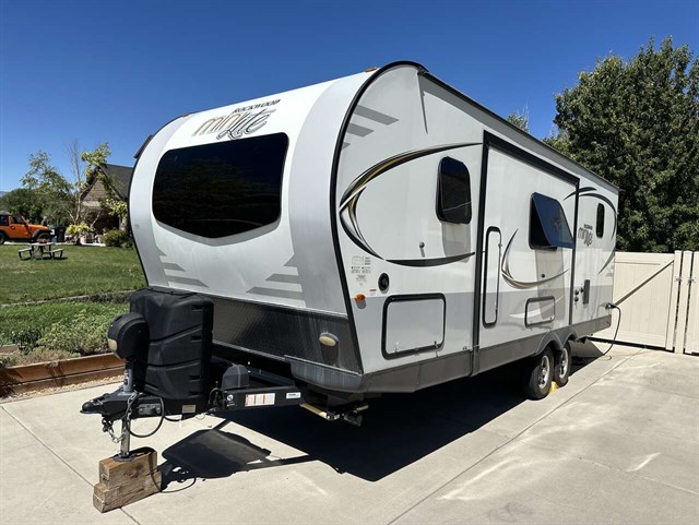 Rockwood takes pride in packing as much value in as little space as they can in this Mini Lite Series to make your investment into these models go a long way. They have quality vacuum bonded construction with their all steel I-beam's and six sided aluminum frames. They do not take shortcuts in any of their units. They are all built from the ground up. The underbelly increases aerodynamics, the Dexter Torflex axles are self-dampening and have independent wheel suspension, and the interior is all residential with solid kitchen countertops and Driftwood and Maple cabinets.