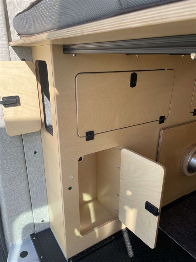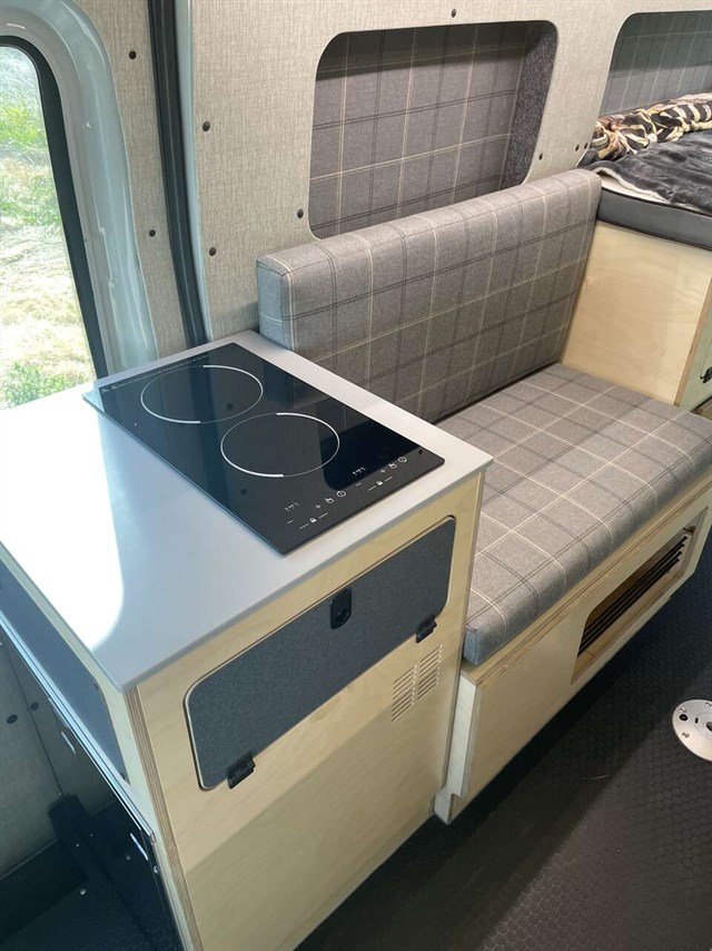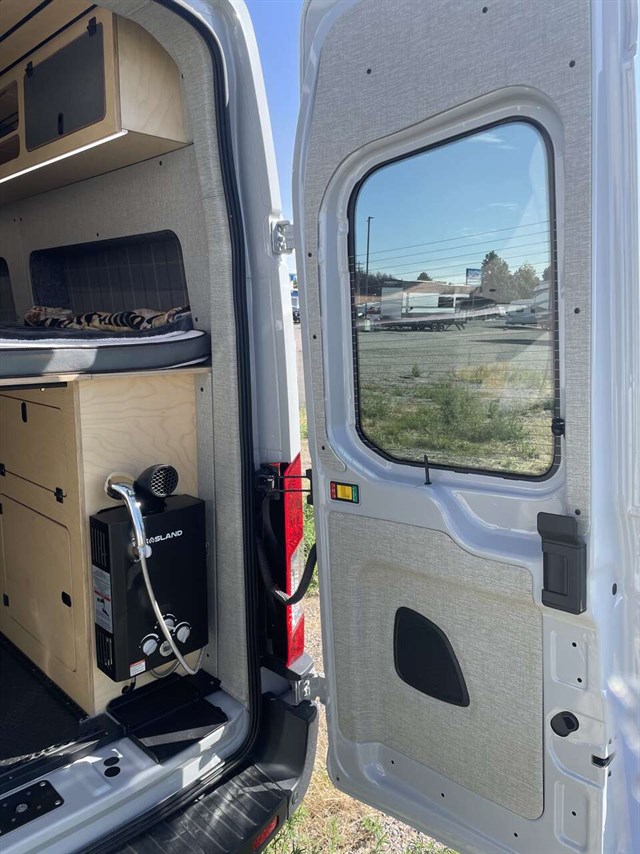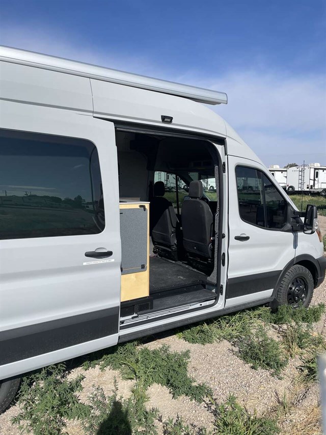 Beautiful custom built 2023 ford transit van. Never slept in and only 7400 miles. 210 amps of batteries and 500 watts of solar. Sleeps 2 adults and 2 smaller adults or children. Plenty of storage in sturdy custom cabinets. Out door on demand shower and indoor porta potty. No gray tanks to worry about. 28 gallon fresh water tank and propane for shower. Brand new 10 ply tires. All wheel drive with ford eco boost engine. Stores 2 mountain bikes under bed and built in gun cabinet. Custom lighting thru out. Heat blanket on h2o tank and heat tape on water lines and highly insulated in cabin for winter ski trips. Tow package for pulling your boat. Van still under Ford warranty.